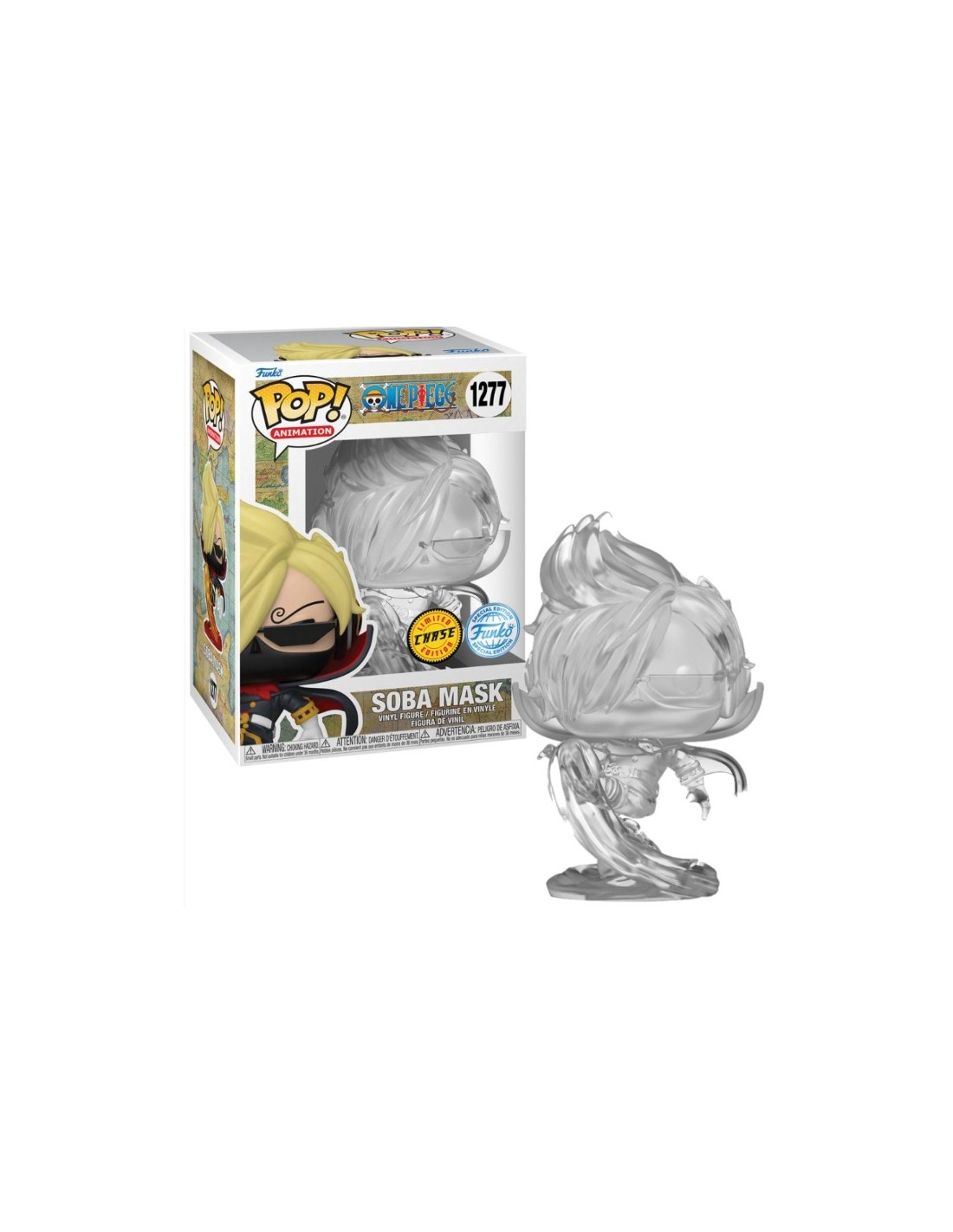 Esta impresionante figura Funko Pop! representa a Soba Mask, la identidad secreta del popular Sanji de One Piece, en una versión Chase translúcida exclusiva de Funko. Con un acabado completamente transparente que resalta la sensación de velocidad y movimiento, este modelo captura uno de los momentos más impactantes del arco de Whole Cake Island y Germa 66.