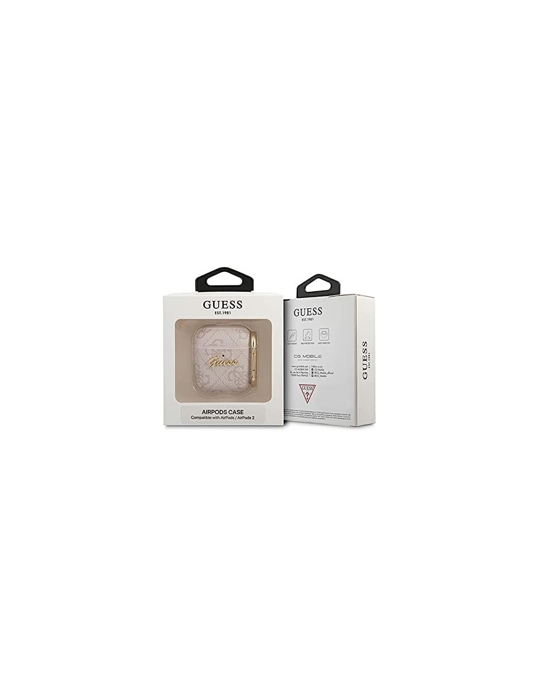 La elegante funda estampada rosa con el emblema metálico de Guess para Apple Airpods está hecha de una combinación de material duradero con policarbonato que protege los auriculares.