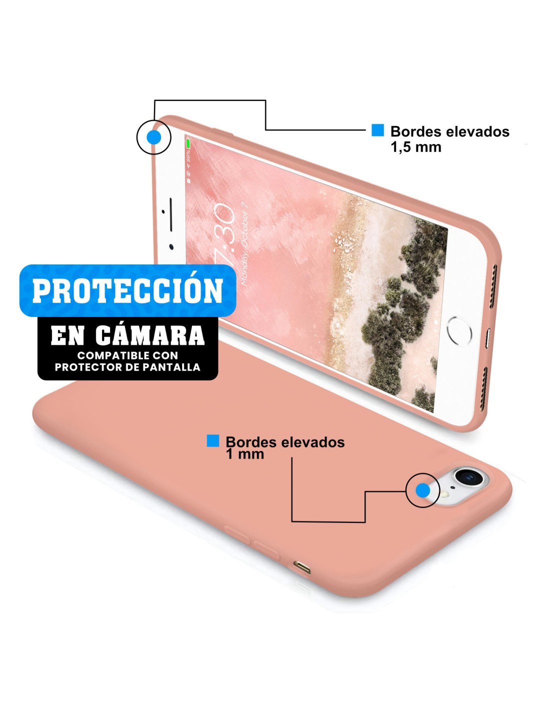 Funda de Silicona para Apple iPhone 7 / 8 / SE 2020 en color Flamingo de la marca Librephonía. Protege tu movil de los golpes, gran resistencia, buen ajuste y diseño.