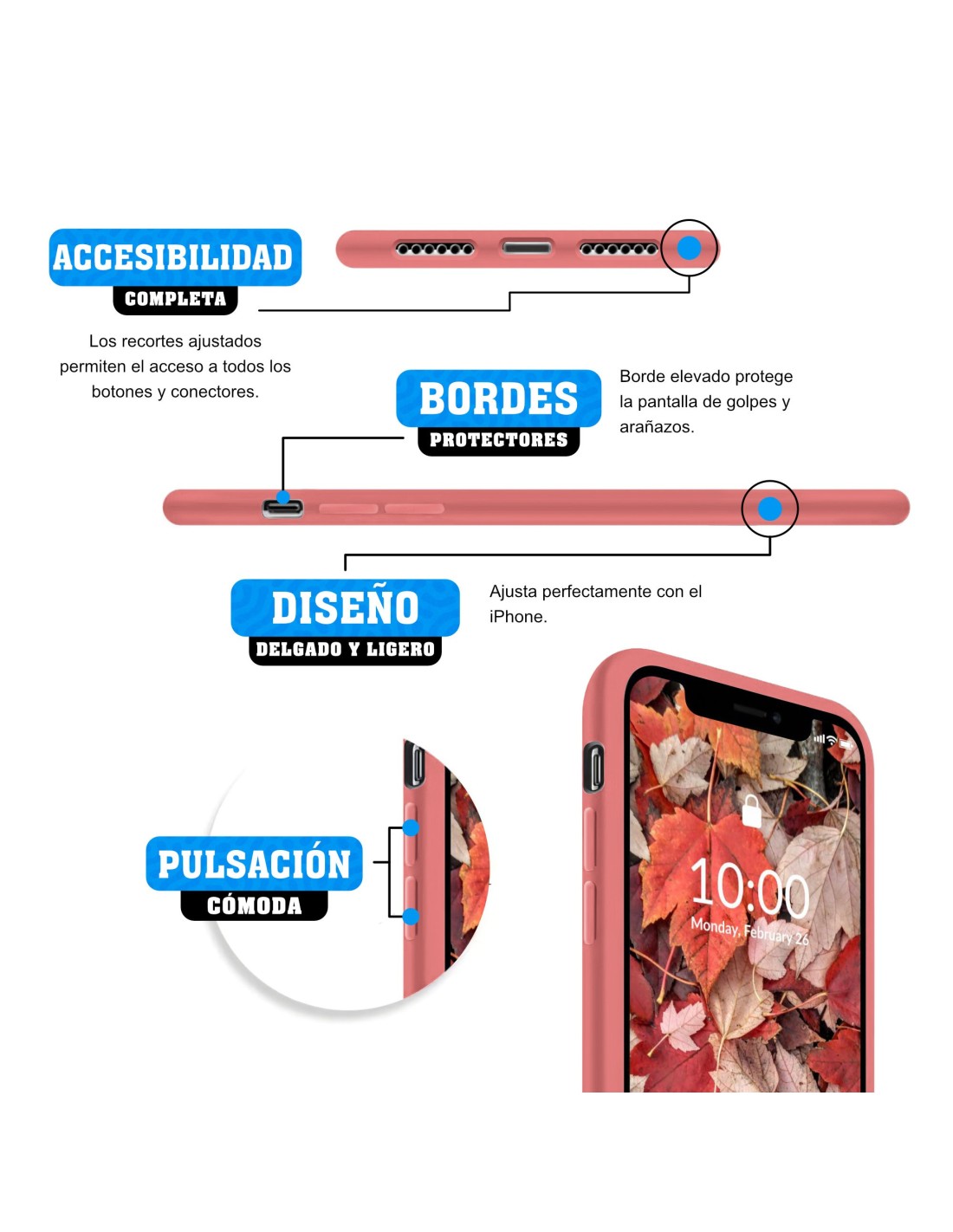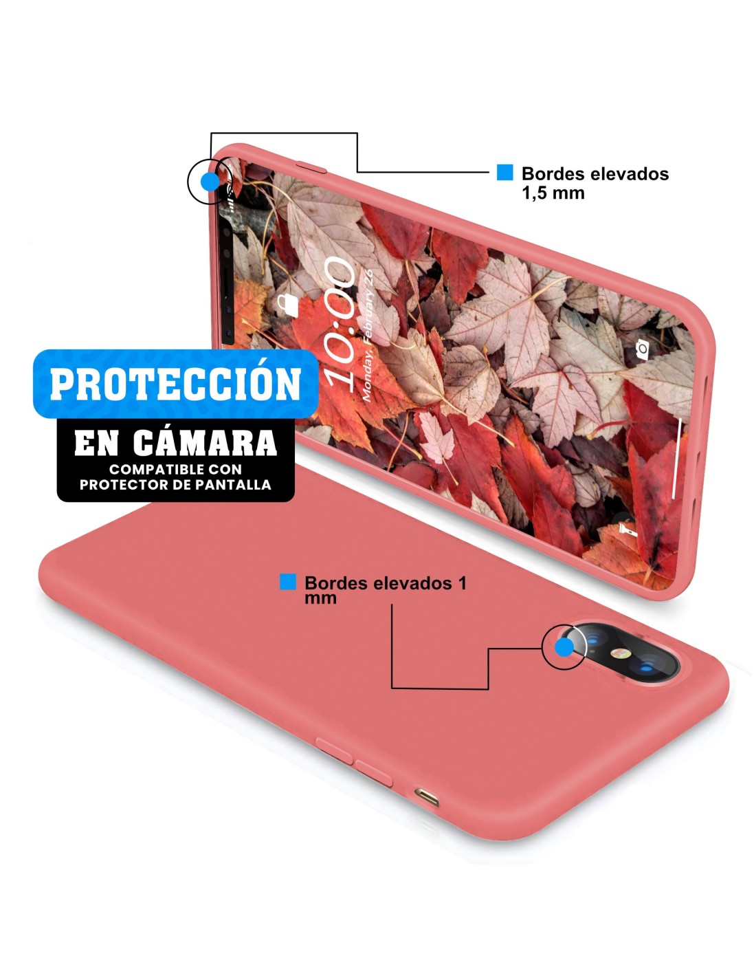 Funda de Silicona para Apple iPhone X / Xs en color Camelia de la marca Librephonía. Protege tu movil de los golpes, gran resistencia, buen ajuste y diseño.