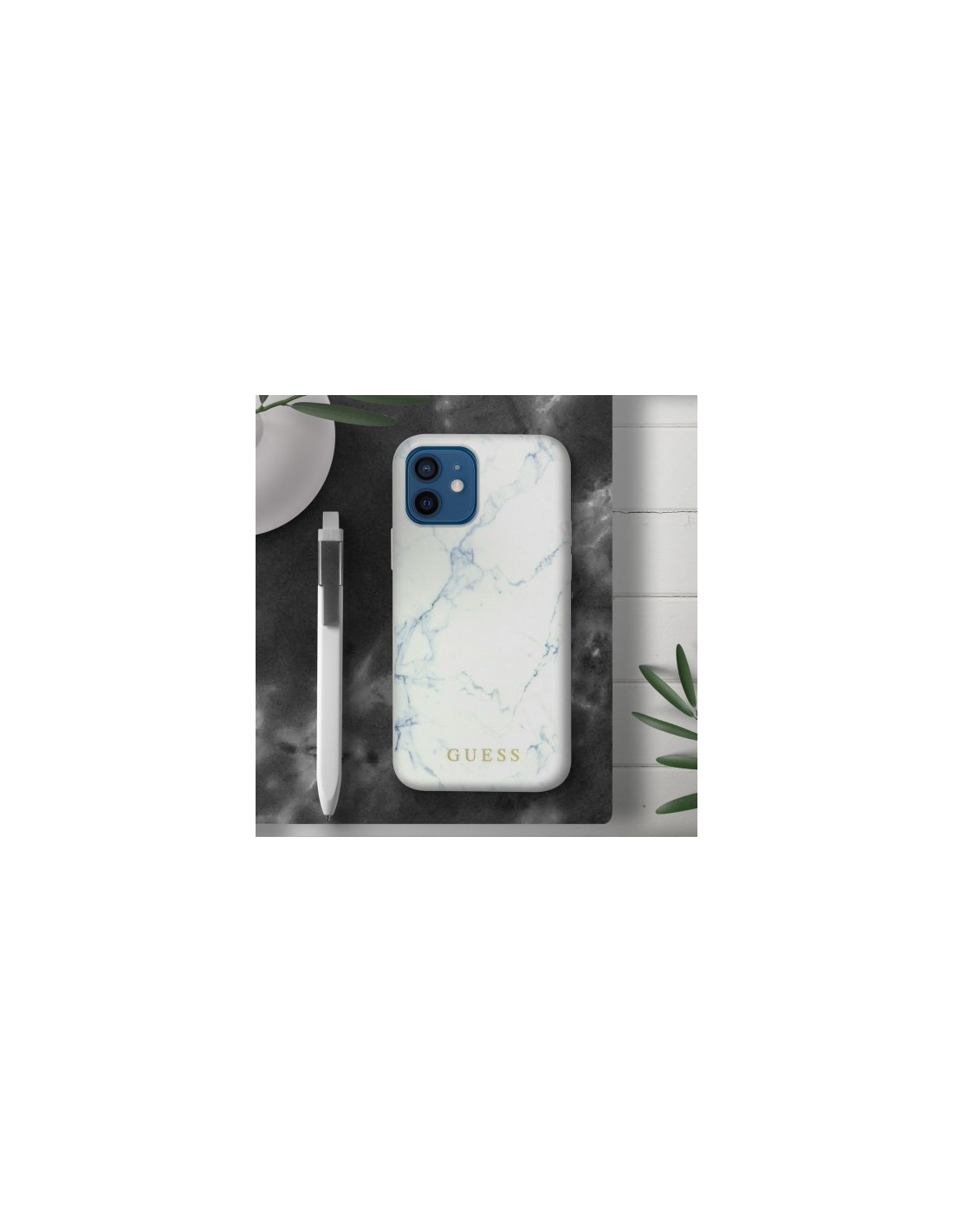Funda de diseño efecto mármol que ofrece un aspecto moderno al móvil. Logotipo grabado. Material rígido y marco reforzado flexible. Funciones accesibles. Funda de Guess elegante y a prueba de golpes para el iPhone 12 mini.