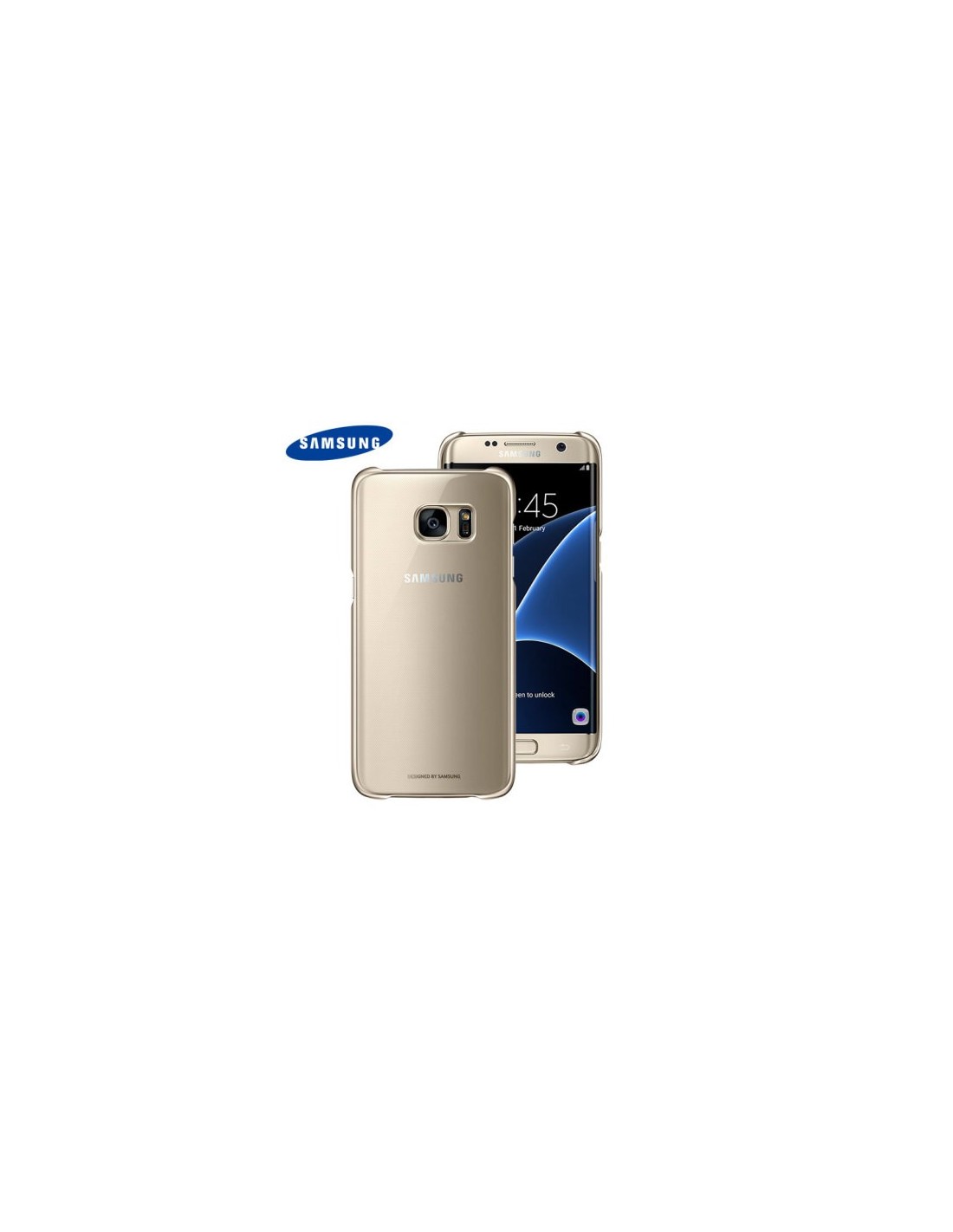 Protege tu Samsung Galaxy S7 Edge de los arañazos del uso diario con esta funda en color dorado transparente con las esquinas en metal.