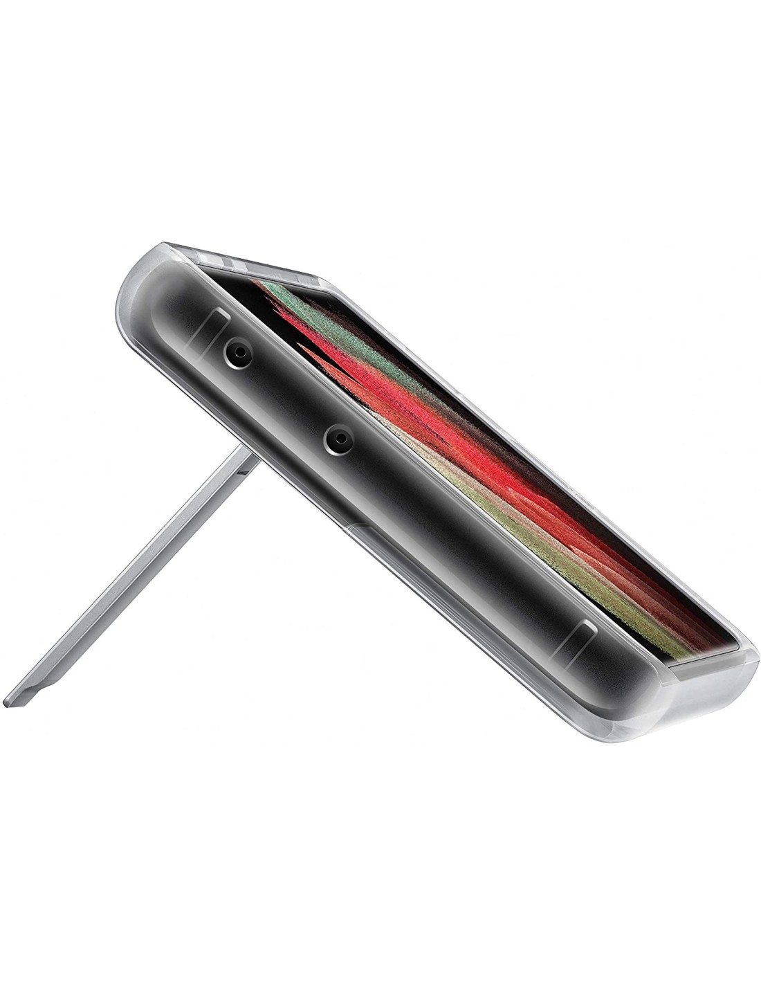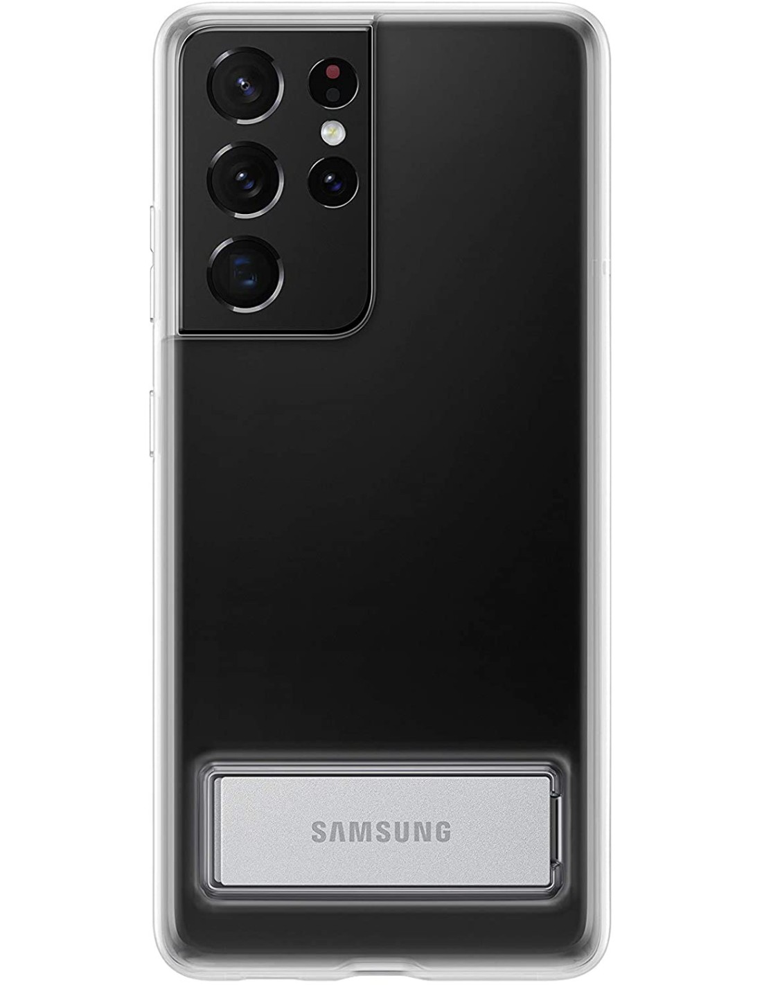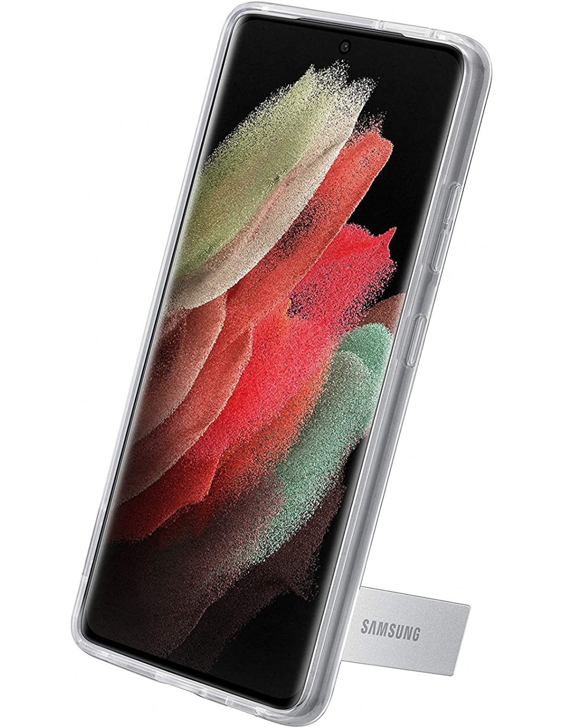 Protege tu Samsung Galaxy S21 Ultra de los arañazos del uso diario con esta funda de silicona y transparente que además tiene un pie que te permite apoyar tu teléfono.