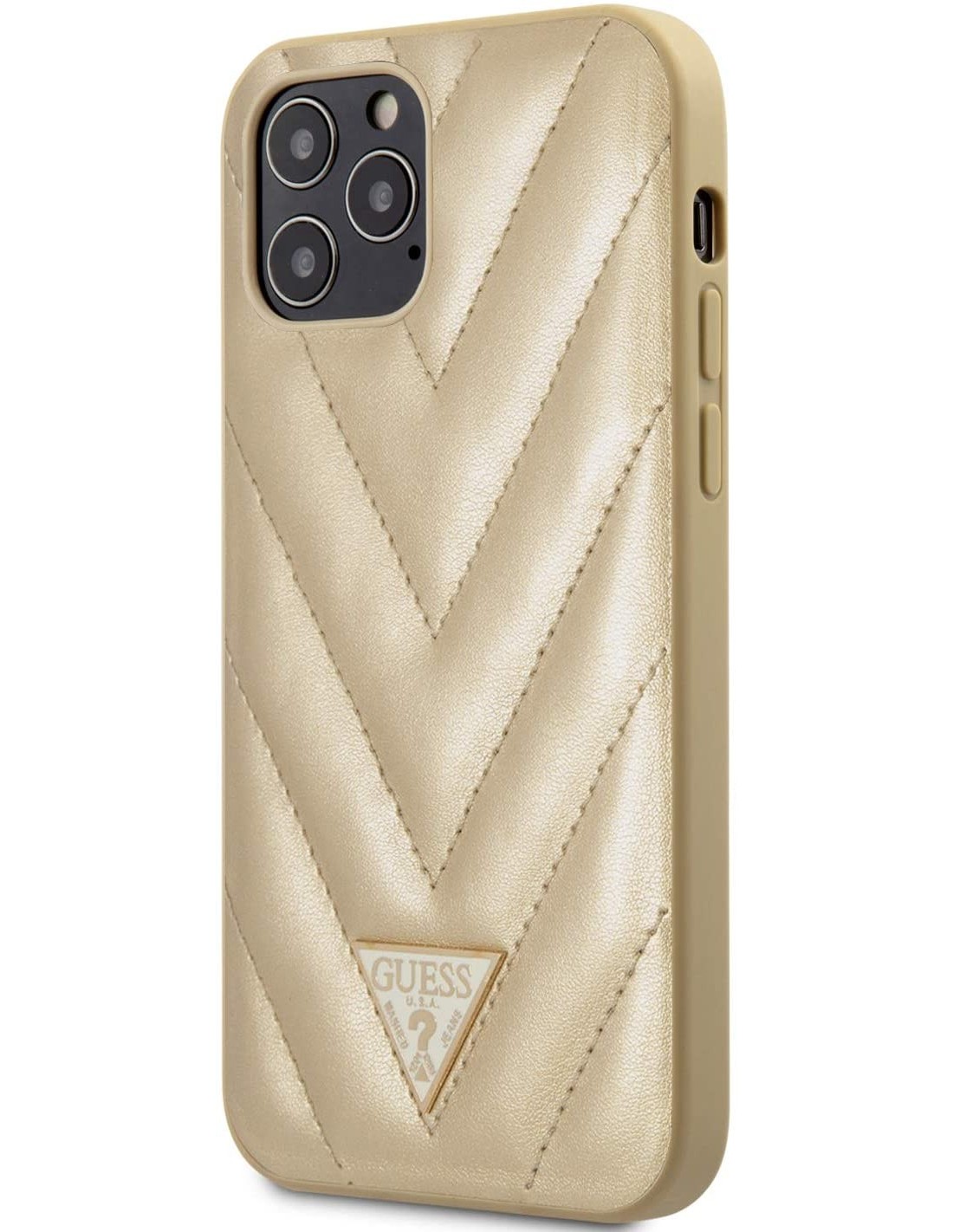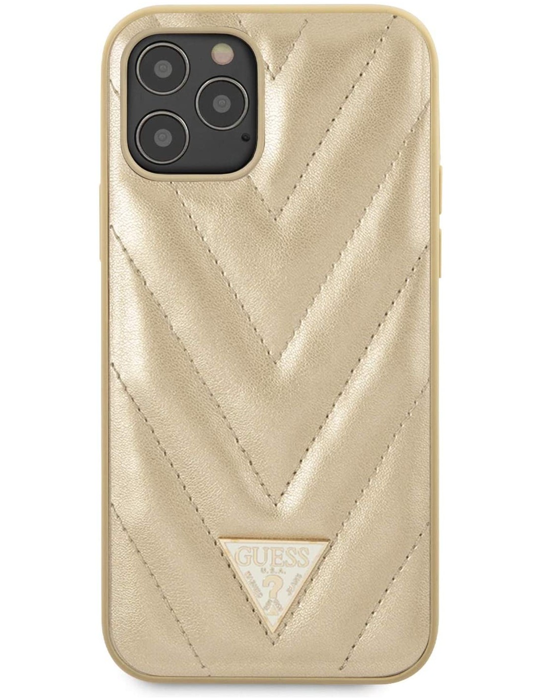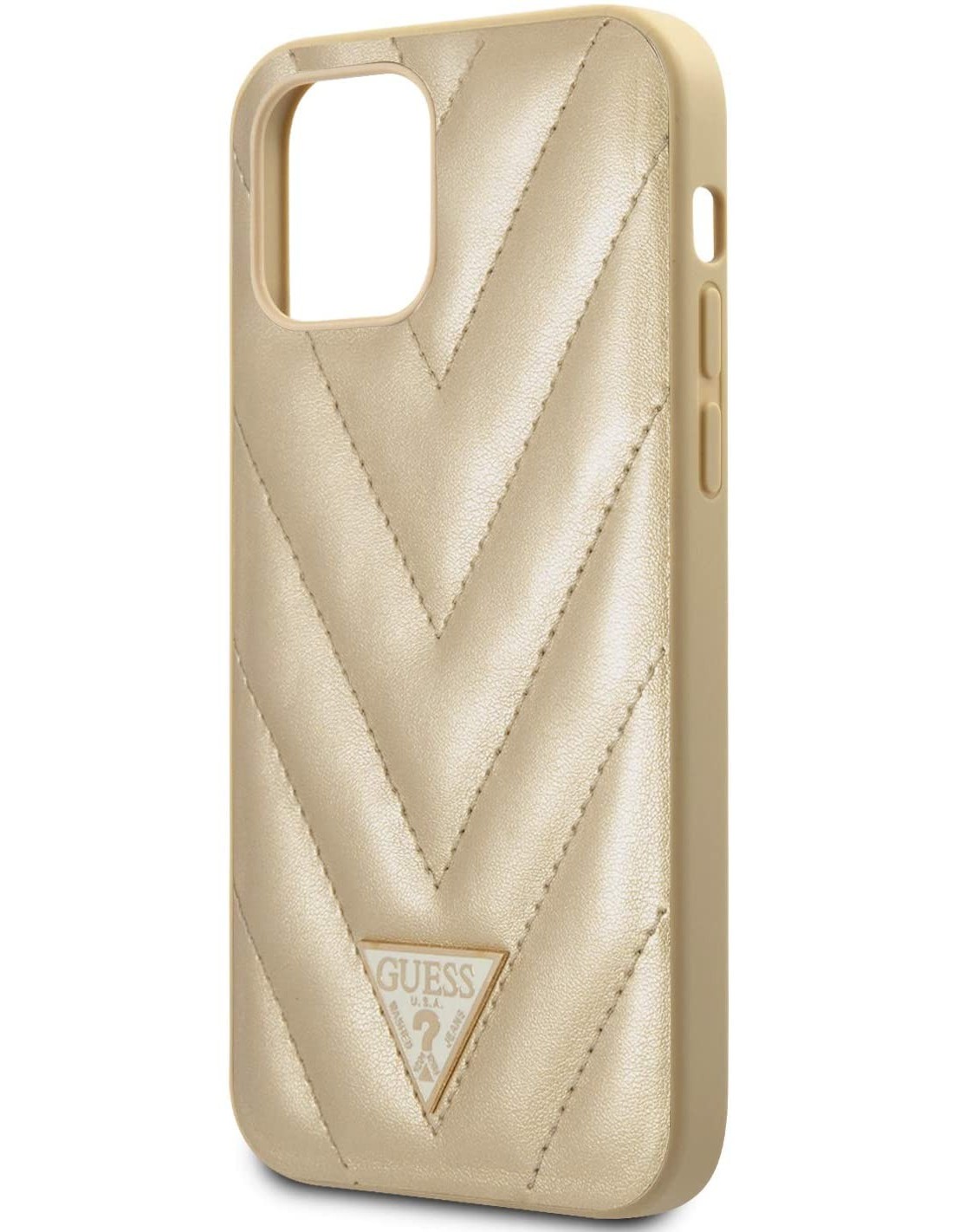 Funda de piel acolchada para iPhone 12 Pro Max color dorado. Diseño y elegancia para proteger tu iPhone 12 Mini de golpes y arañazos.