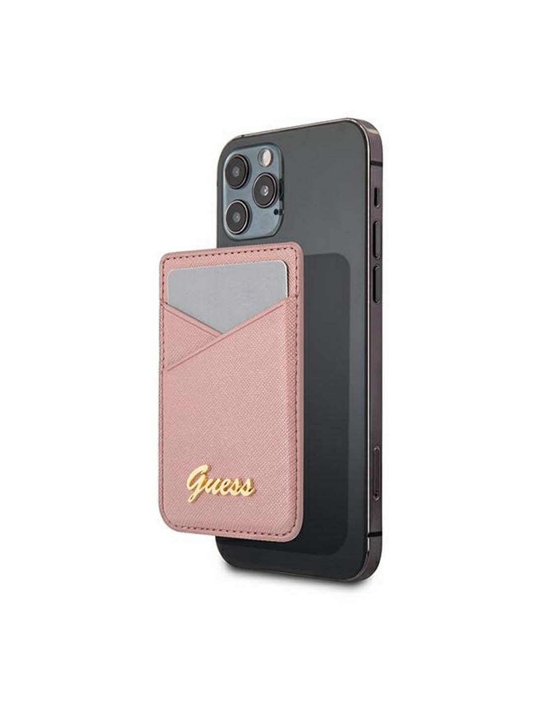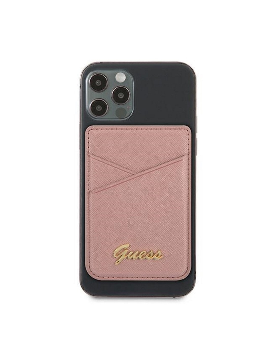 Cartera Tarjetero con Magsafe de Piel Guess para iPhone 12 Diseño Saffiano en Color Rosa GUWMSSASLPI