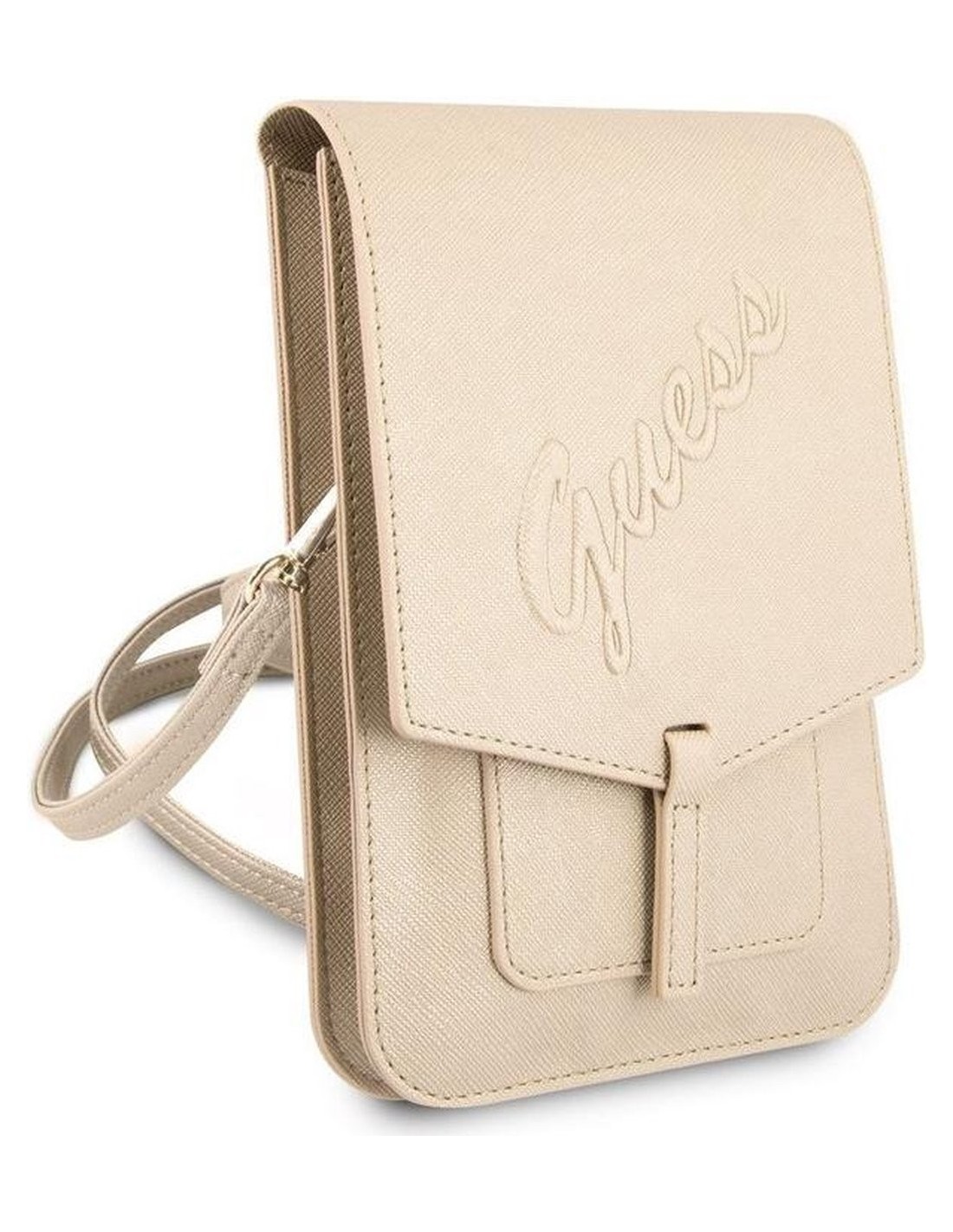 Fabricado en piel. Color dorado.
