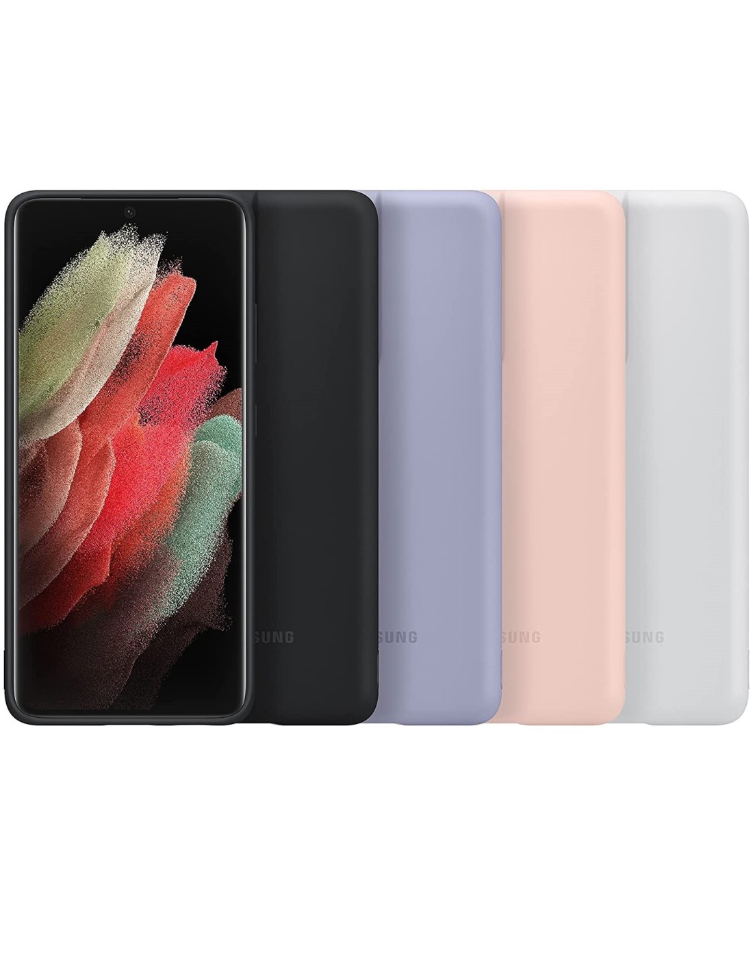 Protege tu Samsung Galaxy S21 Ultra de los arañazos del uso diario con esta funda de silicona en color violeta.