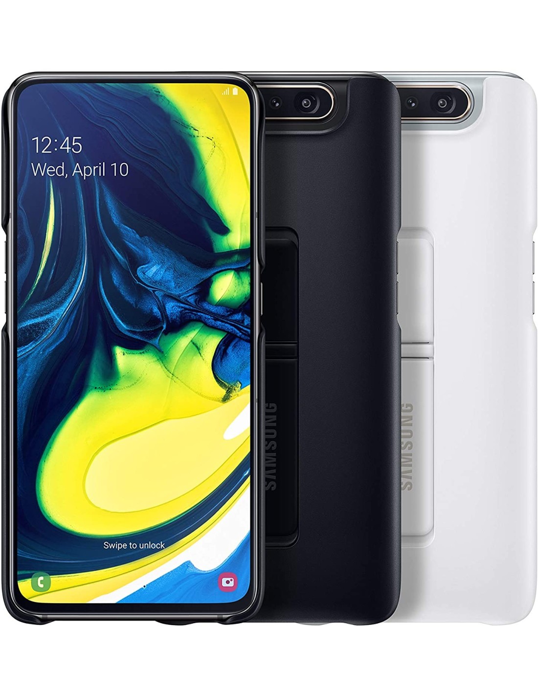 Protege tu Samsung Galaxy A80 de los arañazos del uso diario con esta funda con soporte en color negro.