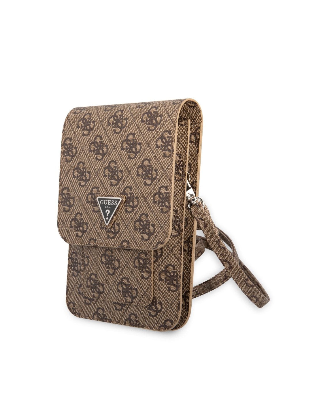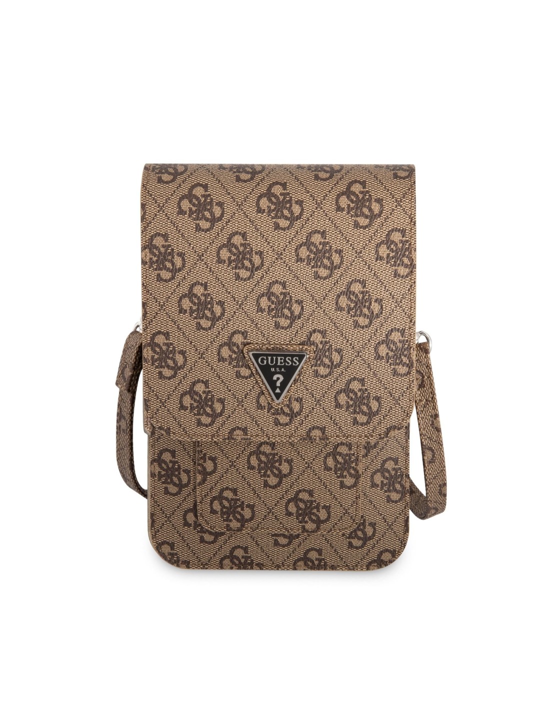 Fabricado en piel. Color marrón, con logo de triángulo.