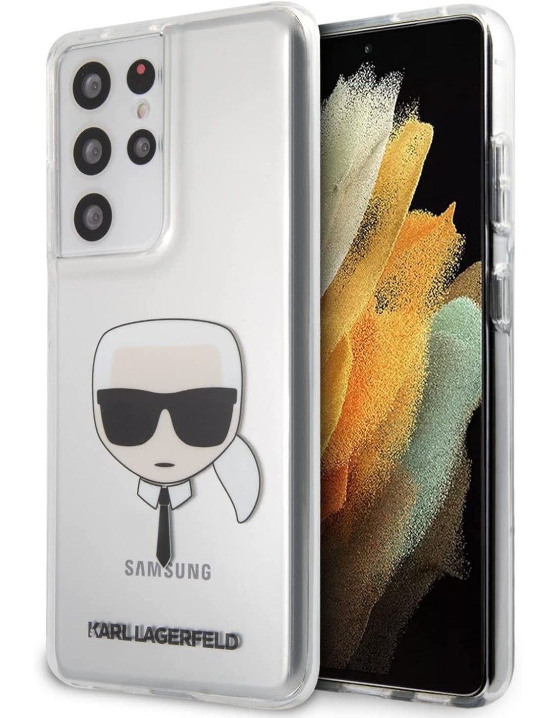 Funda rígida de poliuretano de Karl Lagerfeld modelo cara de Karl para Samsung Galaxy S21 Ultra. Diseño y elegancia para proteger tu Samsung Galaxy S21 Ultra de golpes y suciedad.