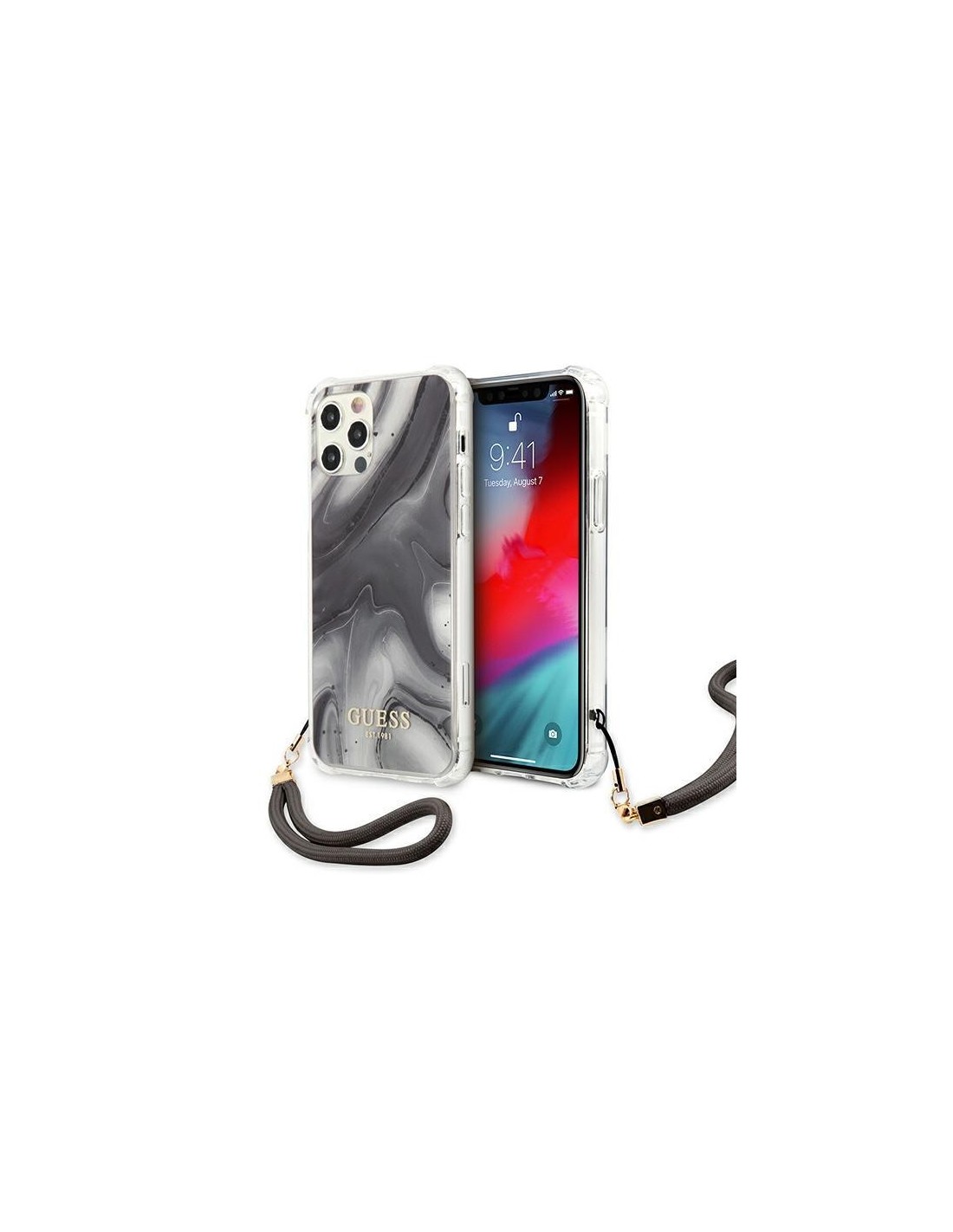Funda Rígida Guess Gris Mármol con cadena de naylon para iPhone 12 | 12 Pro
