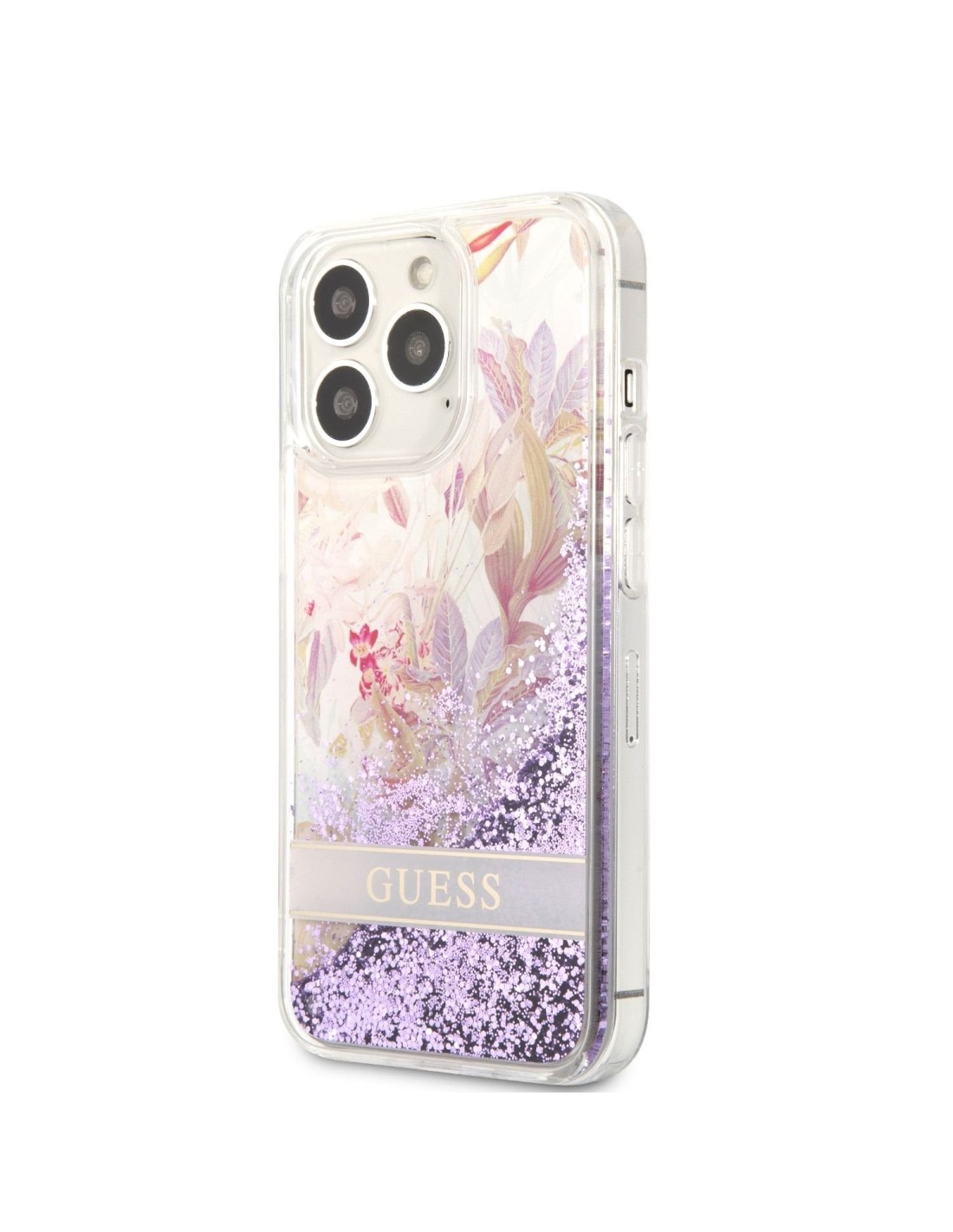 Funda Guess purpurina líquida para iPhone 13 Pro Max Flores Color Morado
