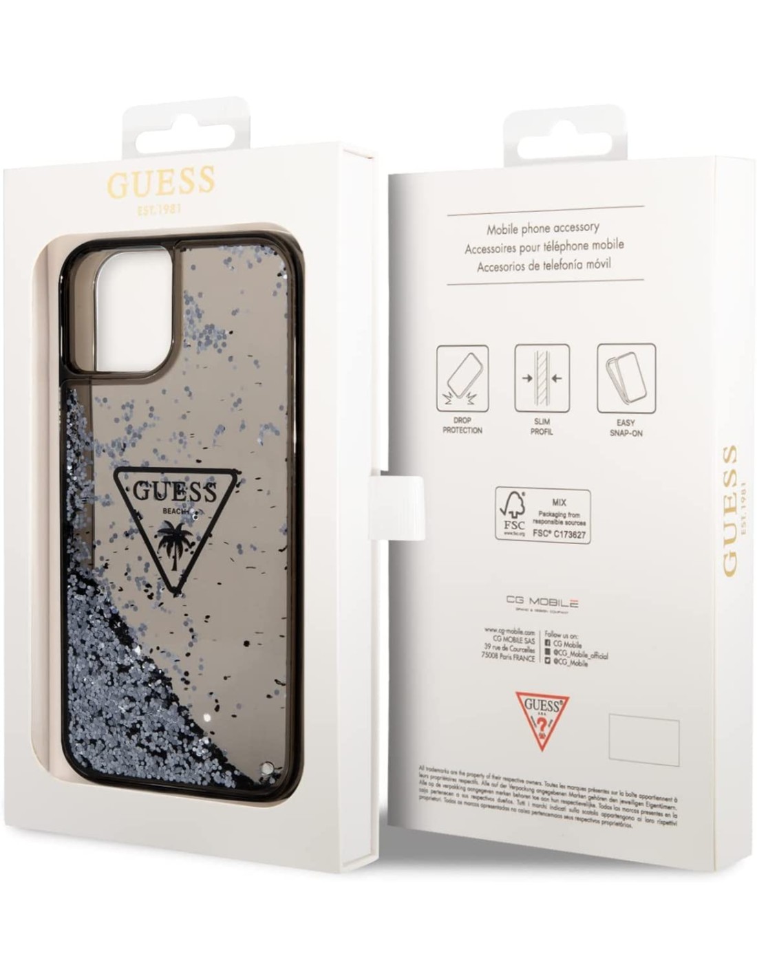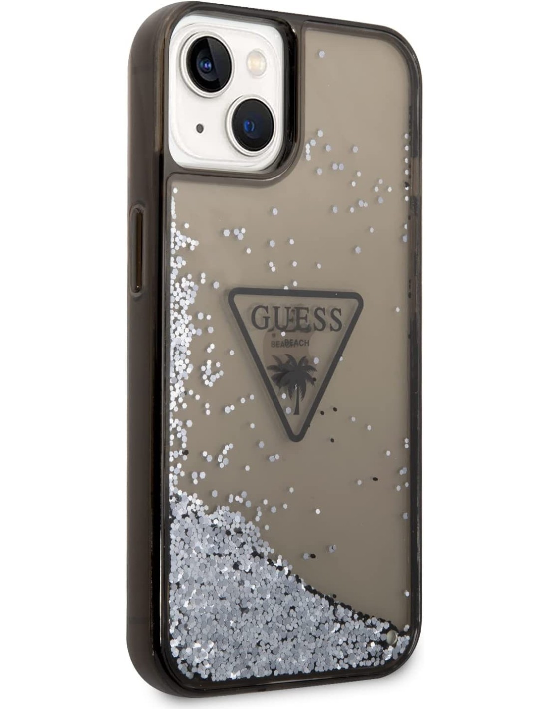 Funda Guess purpurina líquida Plateada para Apple iPhone 14 color Negro. Diseño y elegancia para proteger tu iPhone 14 de golpes y arañazos.