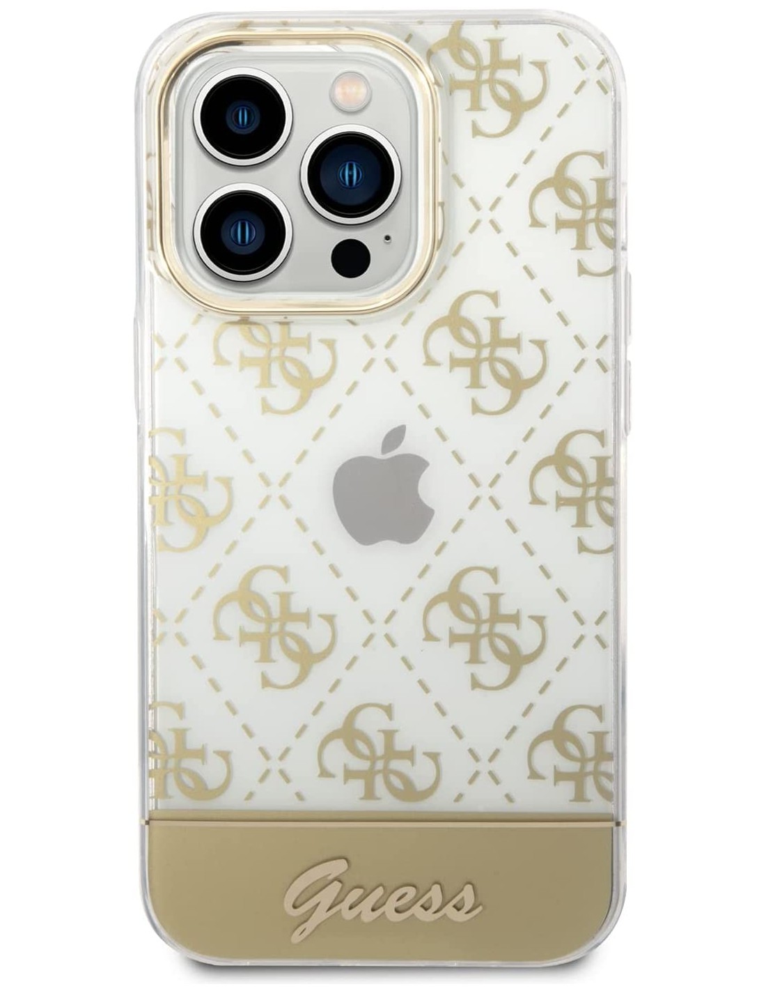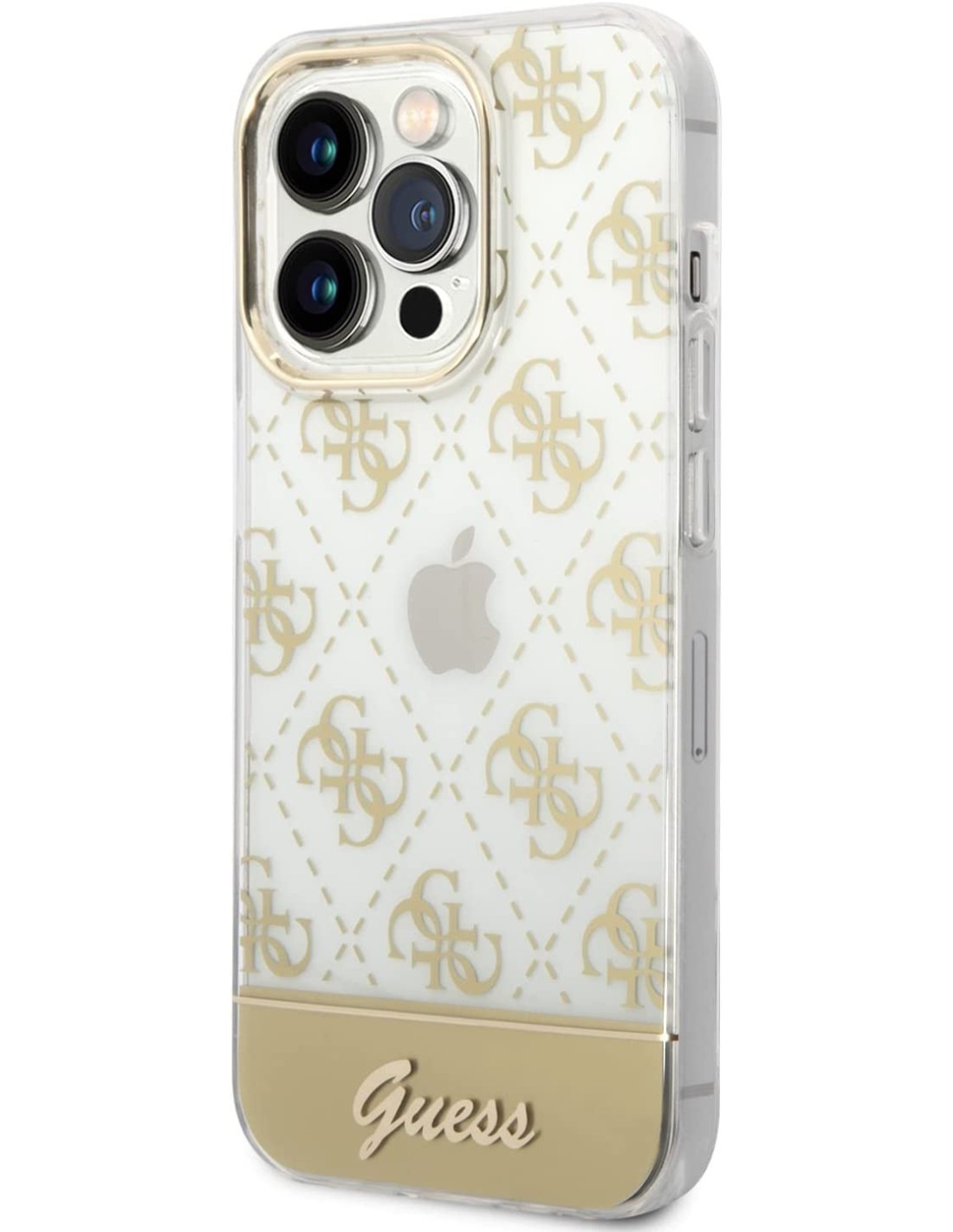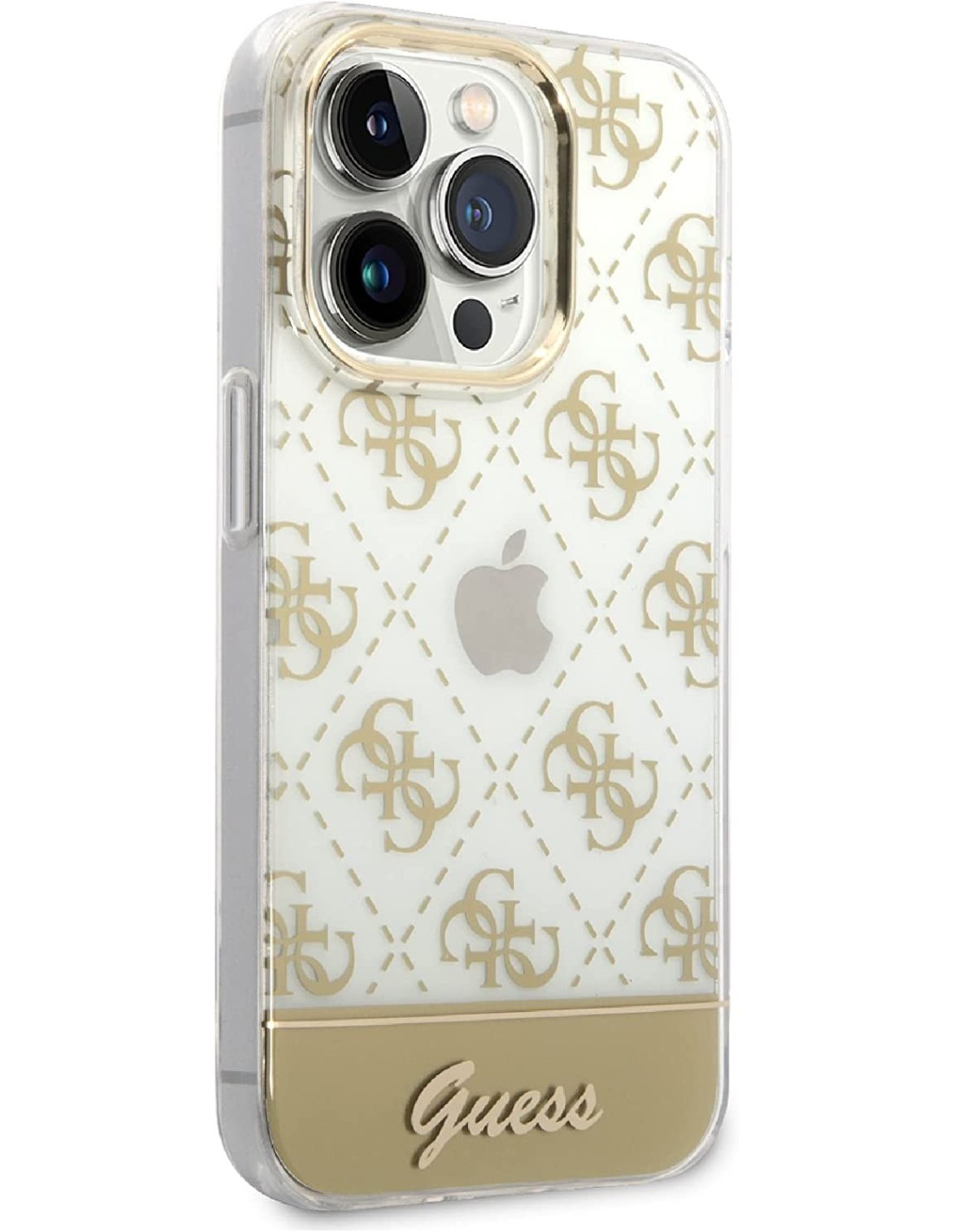 Funda Rígida Guess diseño 4G para Apple iPhone 14 Pro Color Dorado. Diseño y elegancia para proteger tu iPhone 14 Pro de golpes y suciedad.