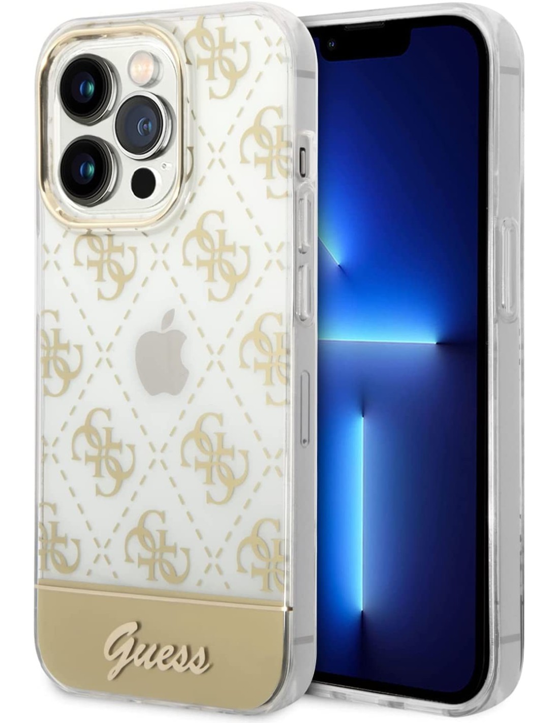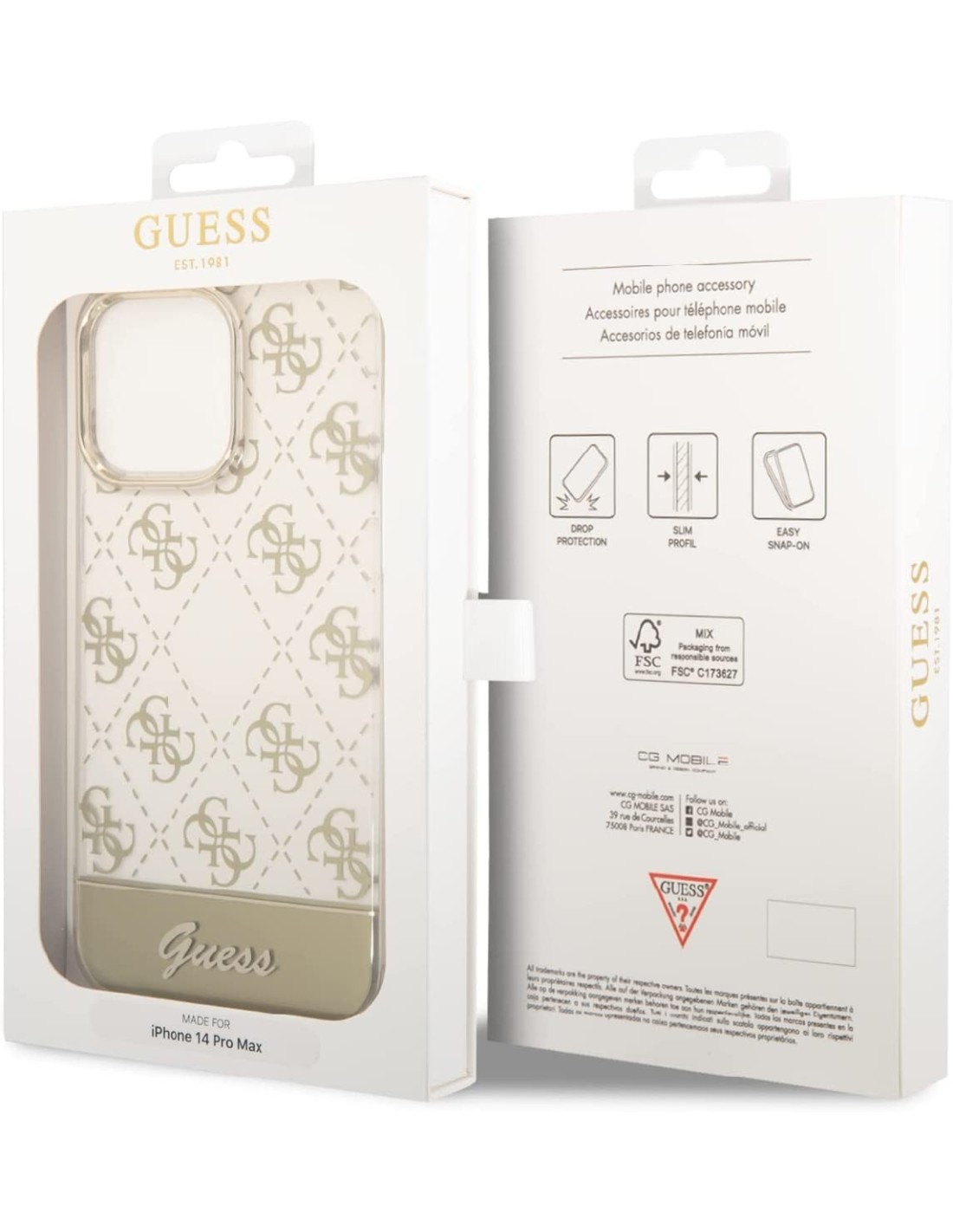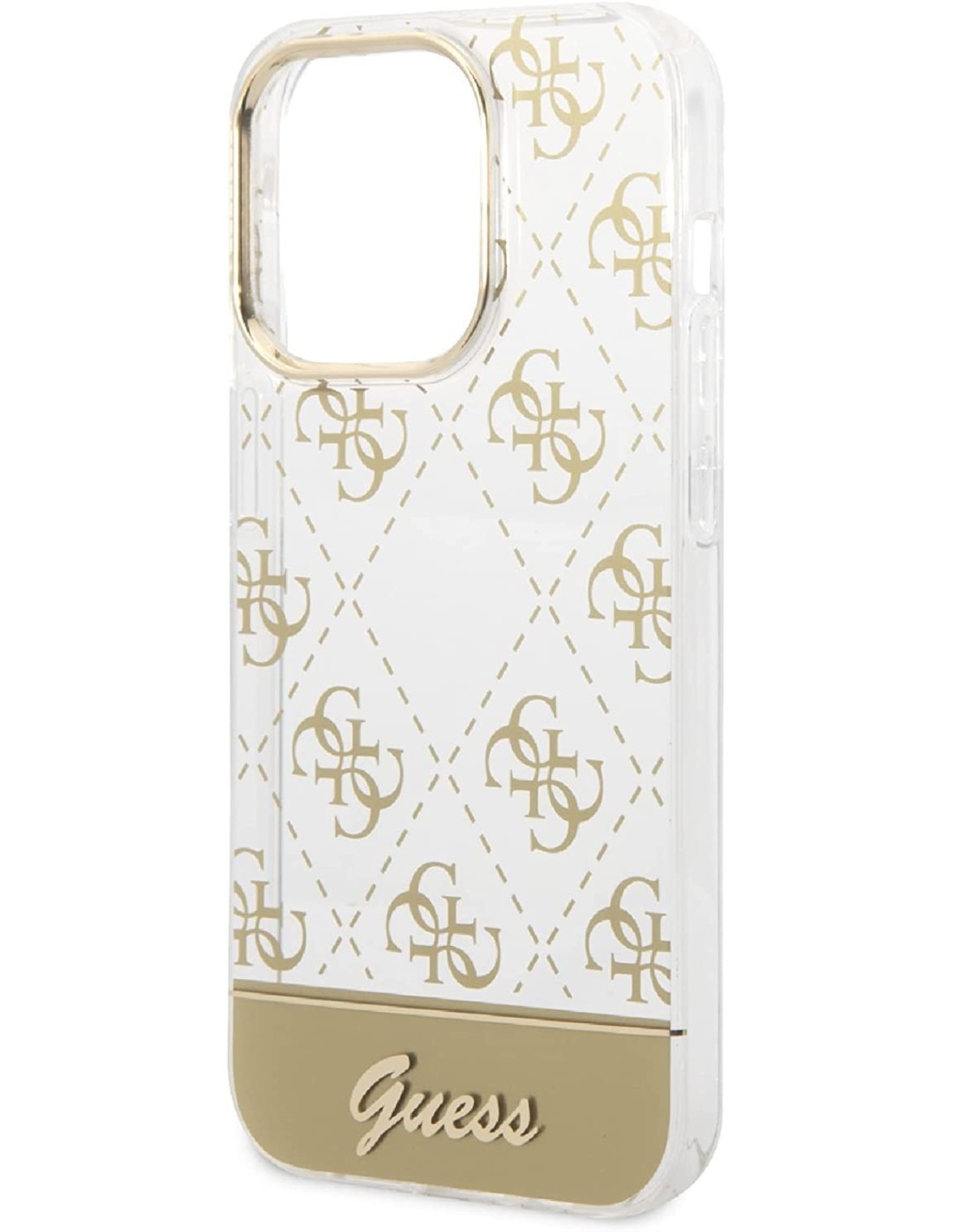 Funda Rígida Guess diseño 4G para Apple iPhone 14 Pro Color Dorado. Diseño y elegancia para proteger tu iPhone 14 Pro de golpes y suciedad.