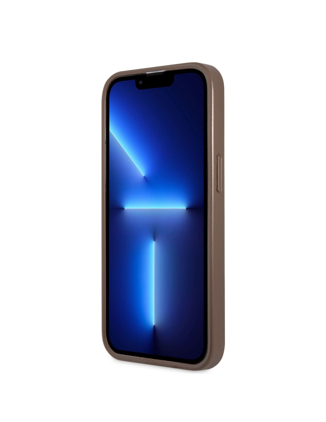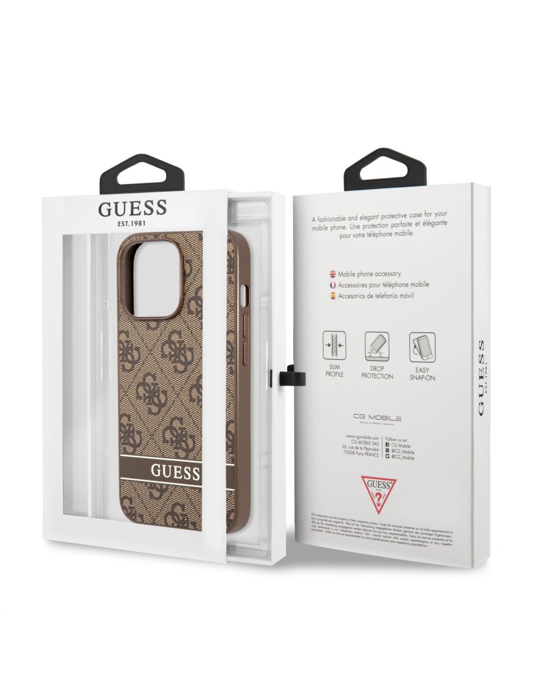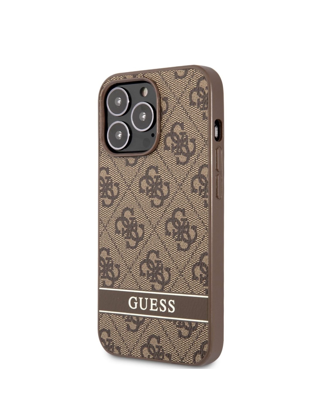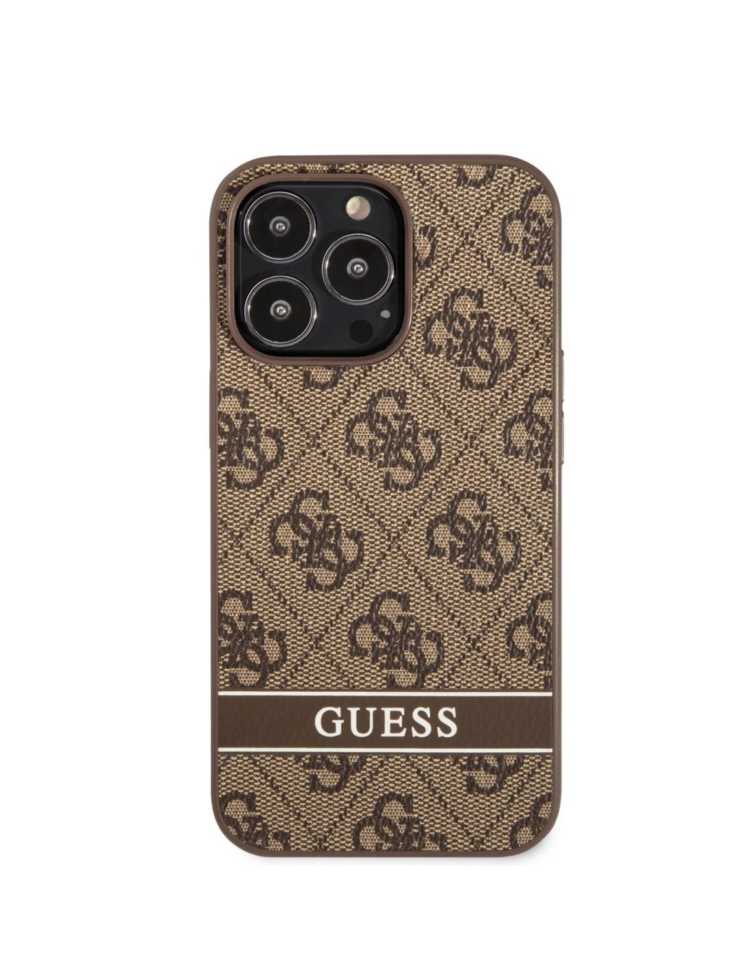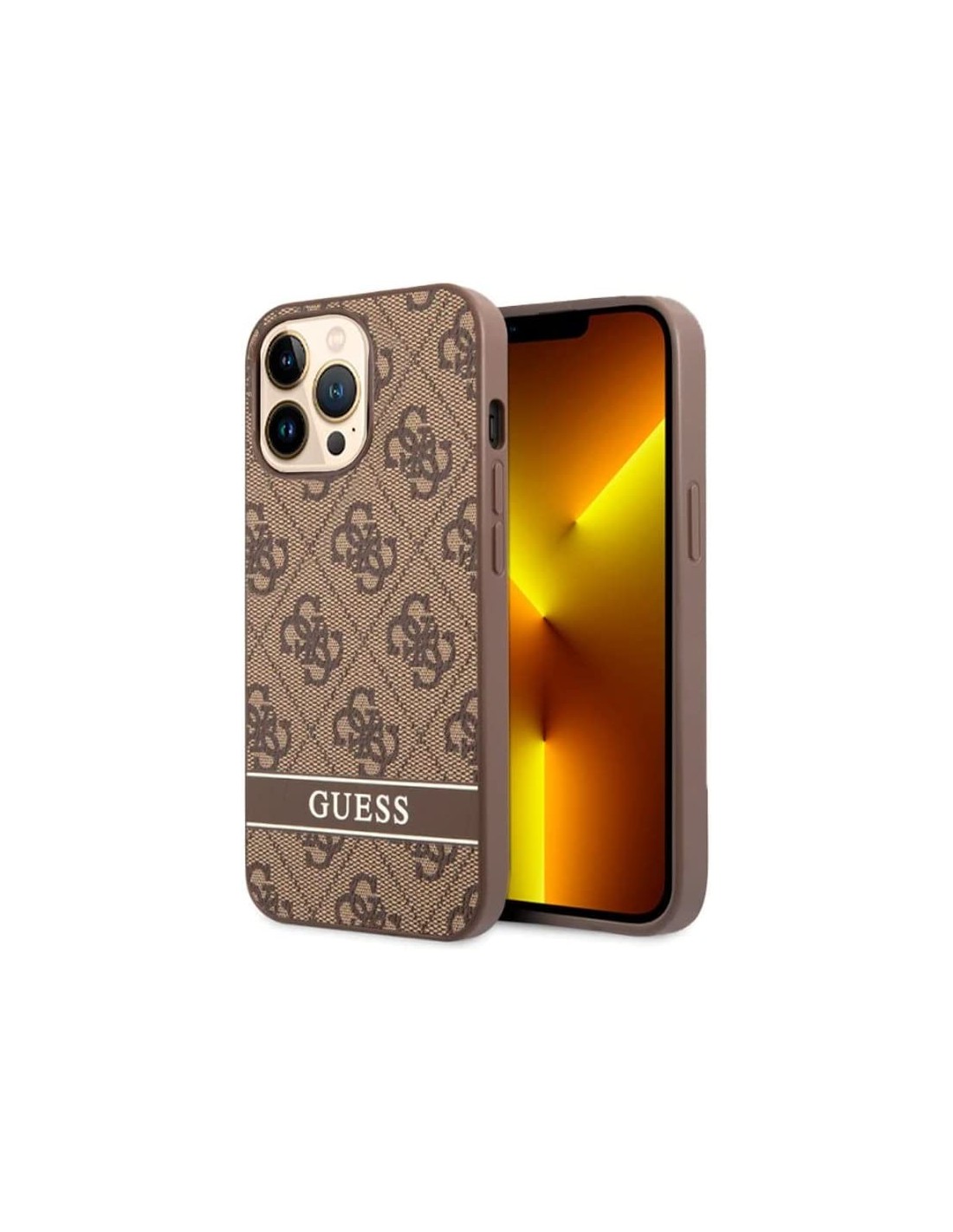 Funda Guess para Apple iPhone 13 Pro Max Marrón con logo y franja Marrón. Diseño y elegancia para proteger tu iPhone 13 Pro Max de golpes y arañazos.