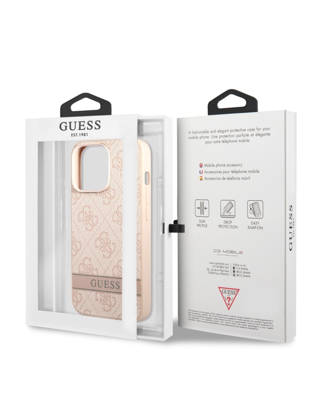 Funda Guess para iPhone 13 Pro Rosa con logo y franja Rosa.