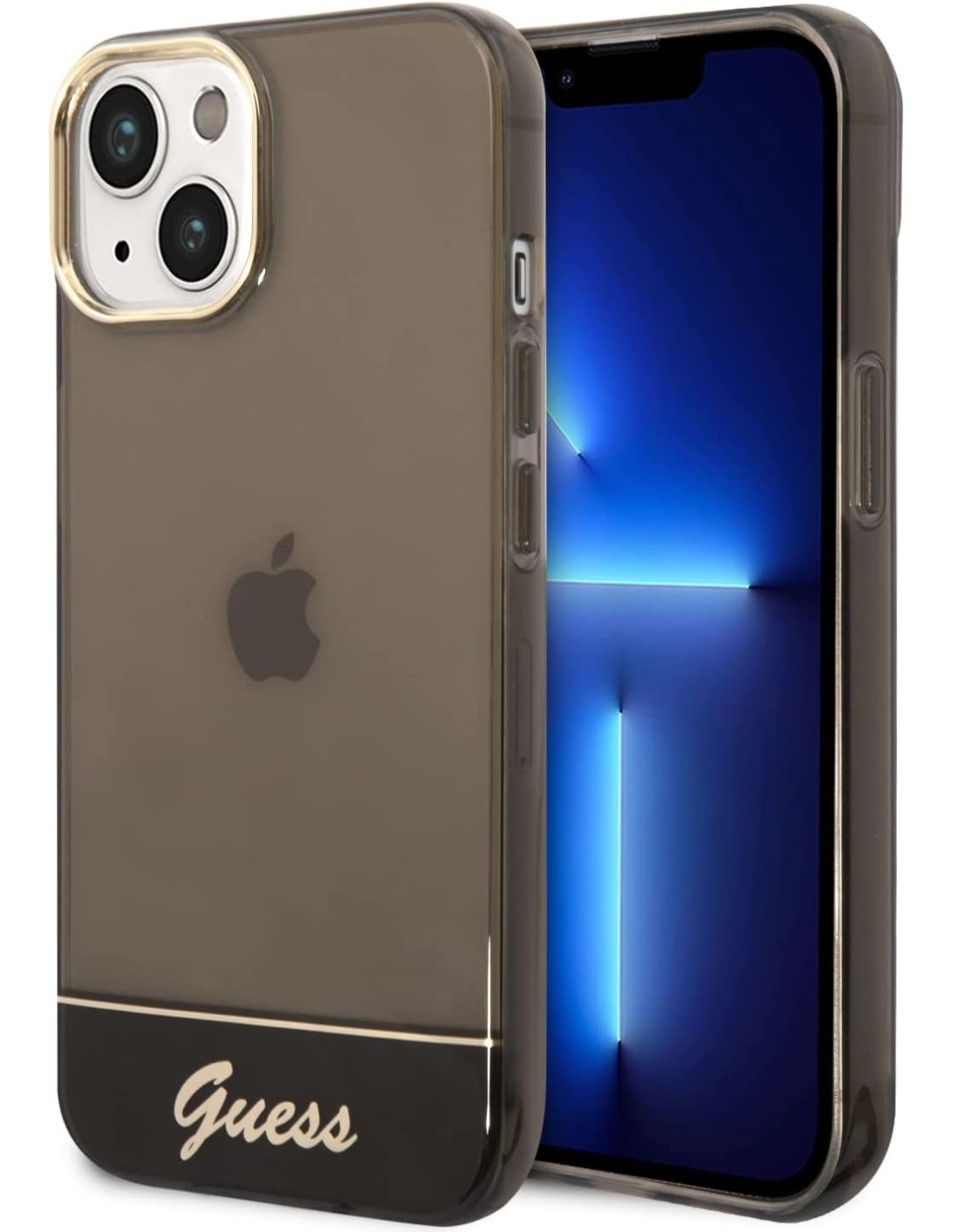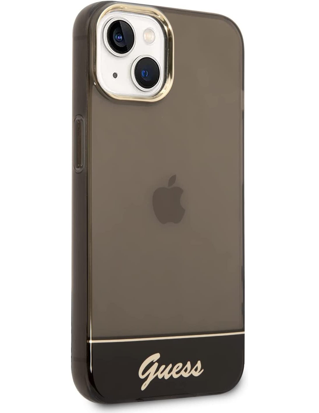 Funda Guess de Silicona Translúcida para Apple iPhone 14 Plus Color Negro con logo dorado