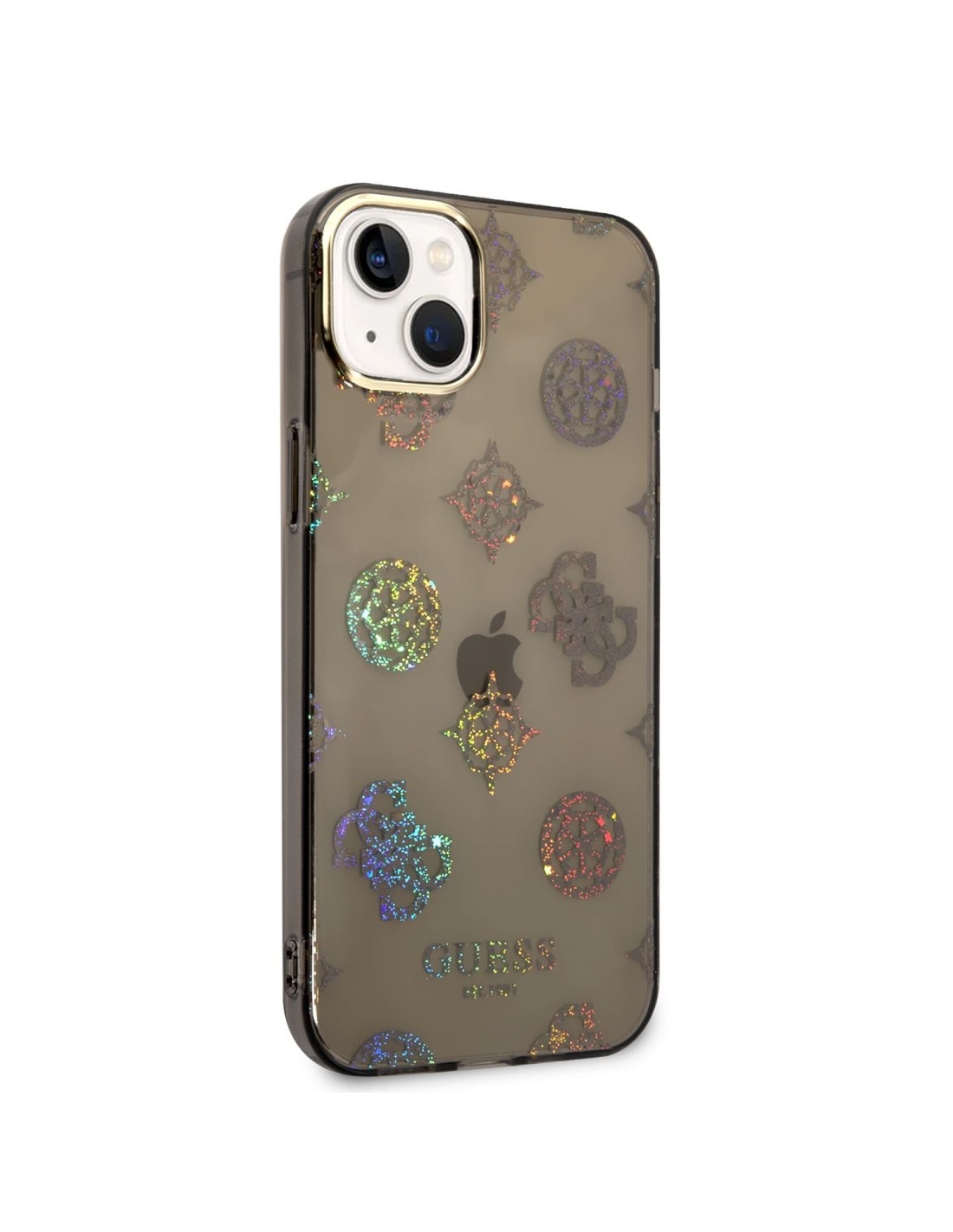 Funda Guess Rígida Translúcida con Peonías Brillantes para Apple iPhone 14 Plus Color Negro. Diseño y elegancia para proteger tu iPhone 14 Plus de golpes y arañazos.