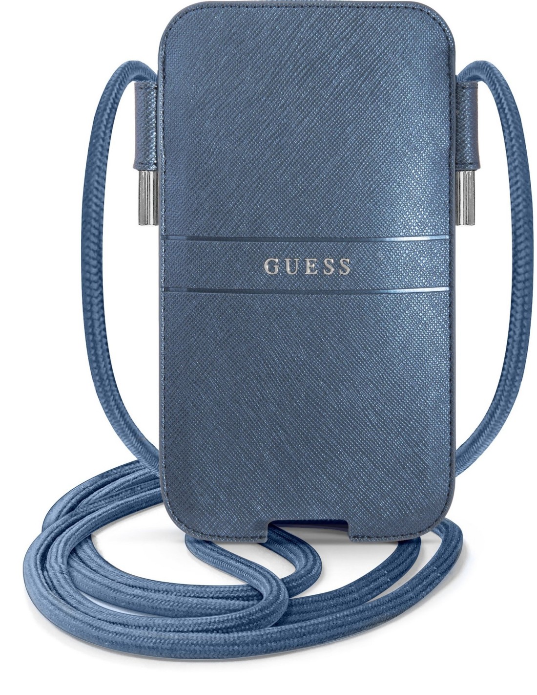 Fabricado en piel sintética. Color azul, modelo Saffiano con logo metálico.