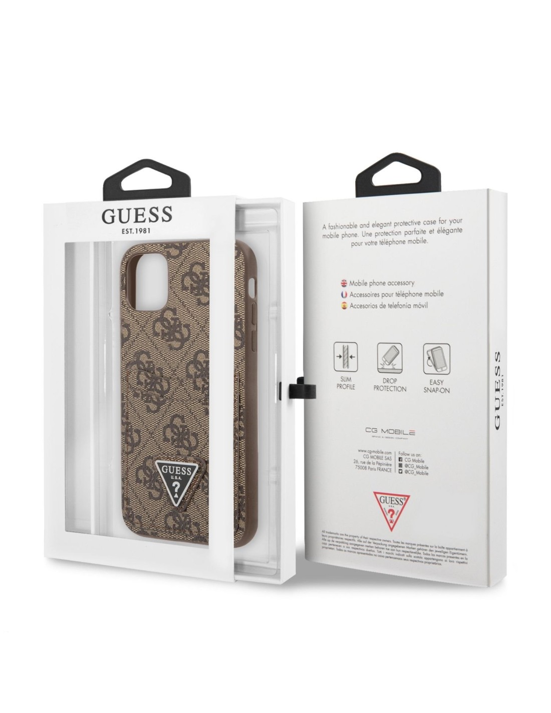 Fabricado en PU. Color marrón, con logo de triángulo.