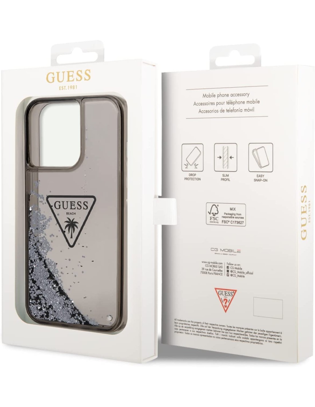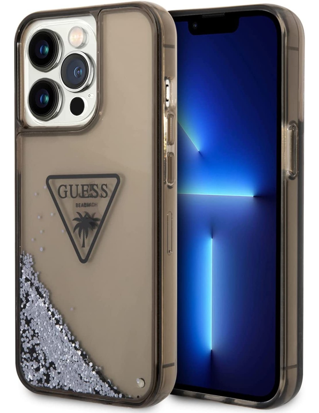 Funda Guess purpurina líquida Plateada para Apple iPhone 14 Pro Max color Negro. Diseño y elegancia para proteger tu iPhone 14 Pro Max de golpes y arañazos.