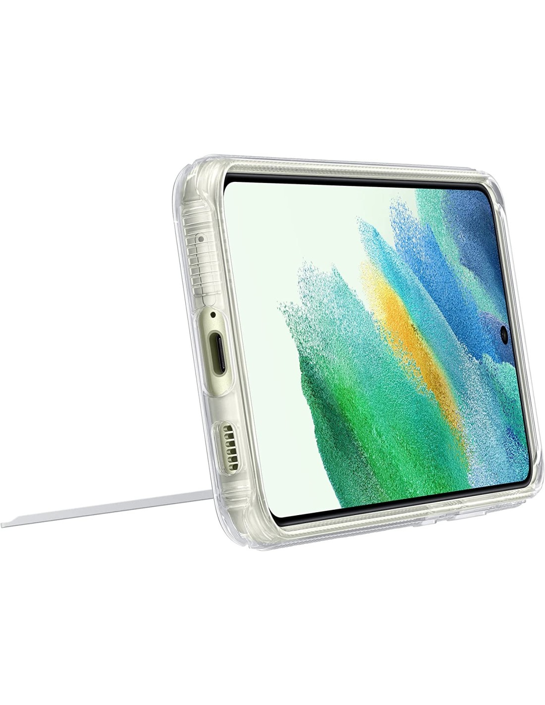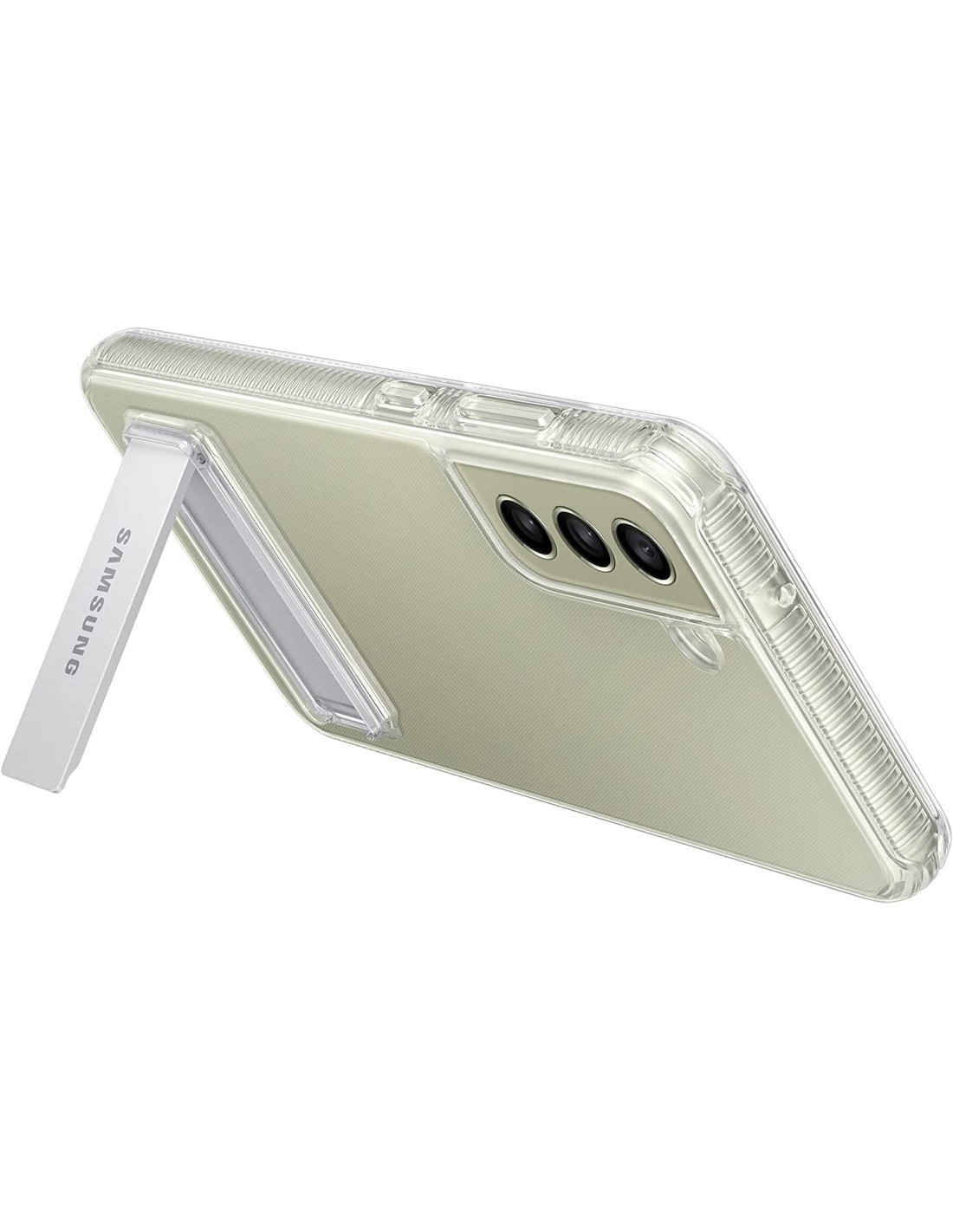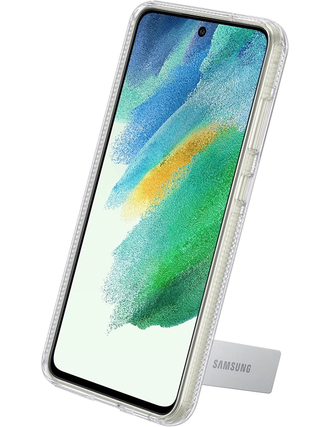 Protege tu Samsung Galaxy S21 FE de los arañazos del uso diario con esta funda de silicona y transparente que además tiene un pie que te permite apoyar tu teléfono.