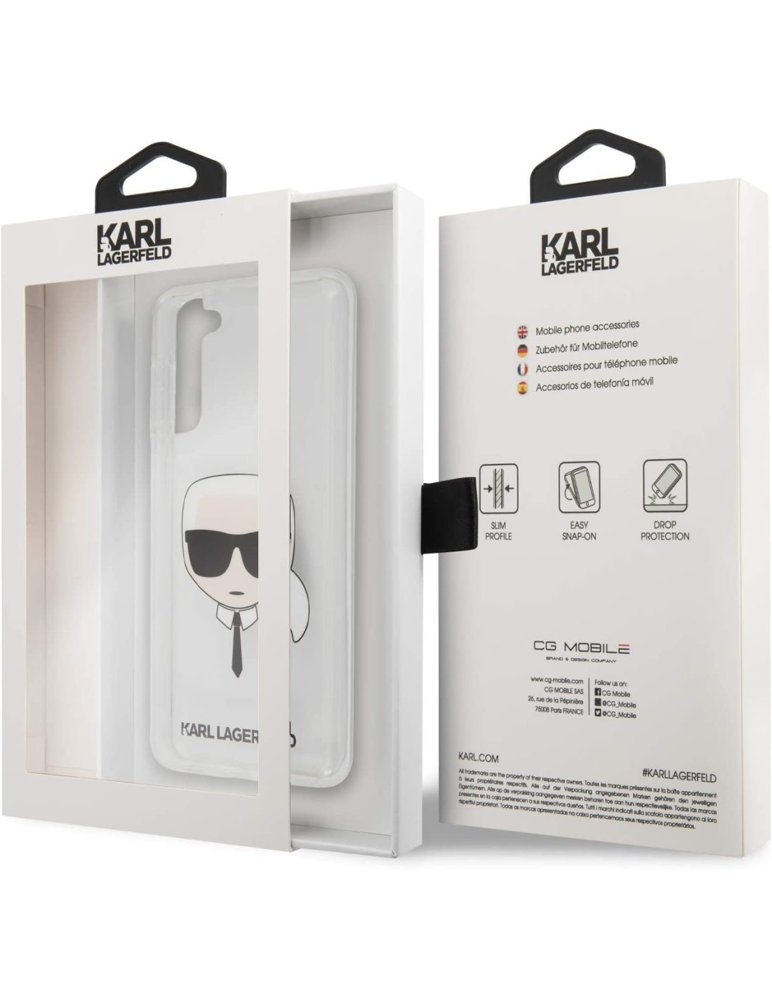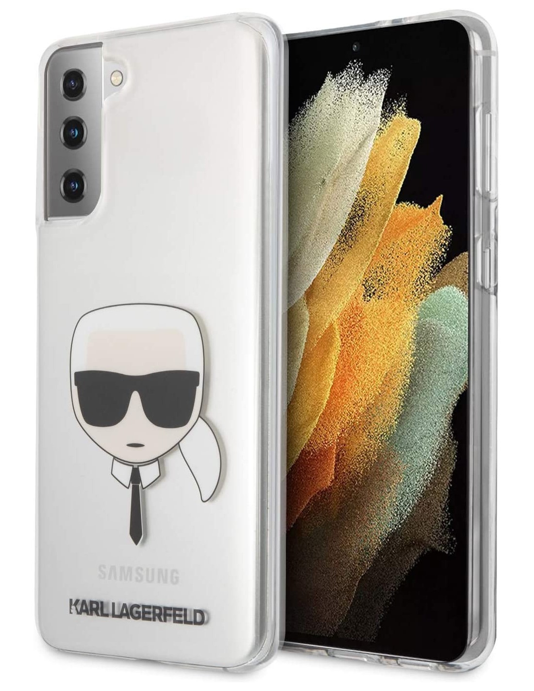 Funda Rígida Karl Lagerfeld para Samsung Galaxy S21 Plus diseño cara de Karl Transparente KLHCS21MKTR
