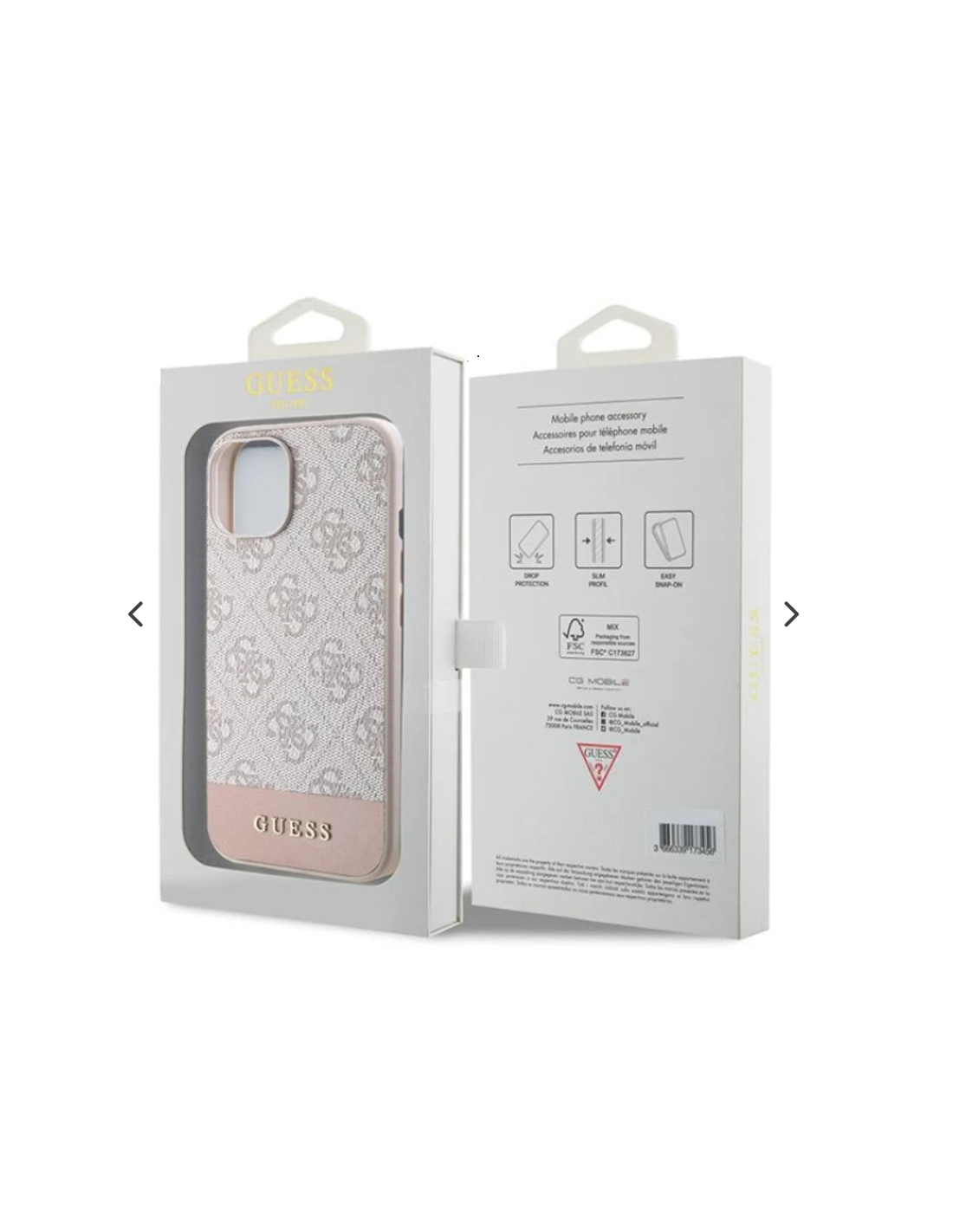Ya sea que estés yendo al trabajo, saliendo con amigos o simplemente navegando por la ciudad, la funda rígida Guess diseño 4G en color rosa es el accesorio perfecto para complementar tu estilo. Añade un toque de elegancia y protección a tu iPhone con esta funda versátil y con estilo de Guess