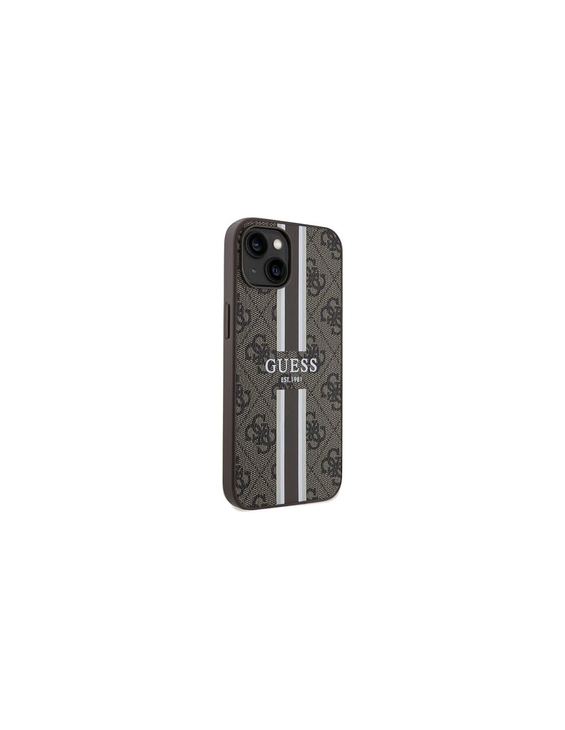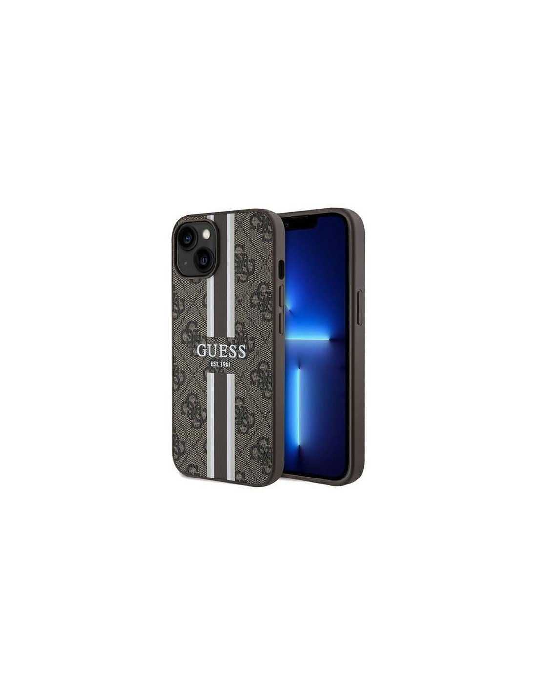 La funda rígida Guess diseño 4G en color marrón es el accesorio perfecto para proteger tu iPhone con estilo. Diseñada con un patrón distintivo de diseño 4G de Guess y franjas verticales, esta funda combina moda y funcionalidad para mantener tu dispositivo seguro mientras añade un toque de elegancia a tu estilo.