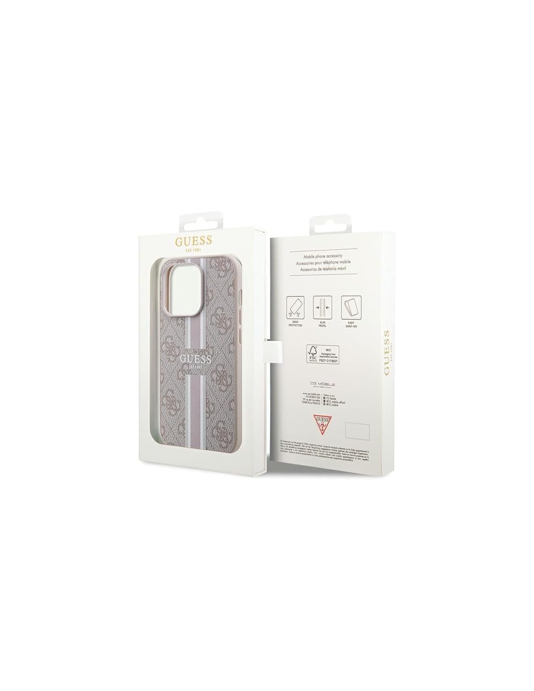 La funda rígida Guess diseño 4G es el accesorio perfecto para proteger tu iPhone con estilo. Diseñada con un patrón distintivo de diseño 4G de Guess y franjas verticales, esta funda combina moda y funcionalidad para mantener tu dispositivo seguro mientras añade un toque de elegancia a tu estilo.