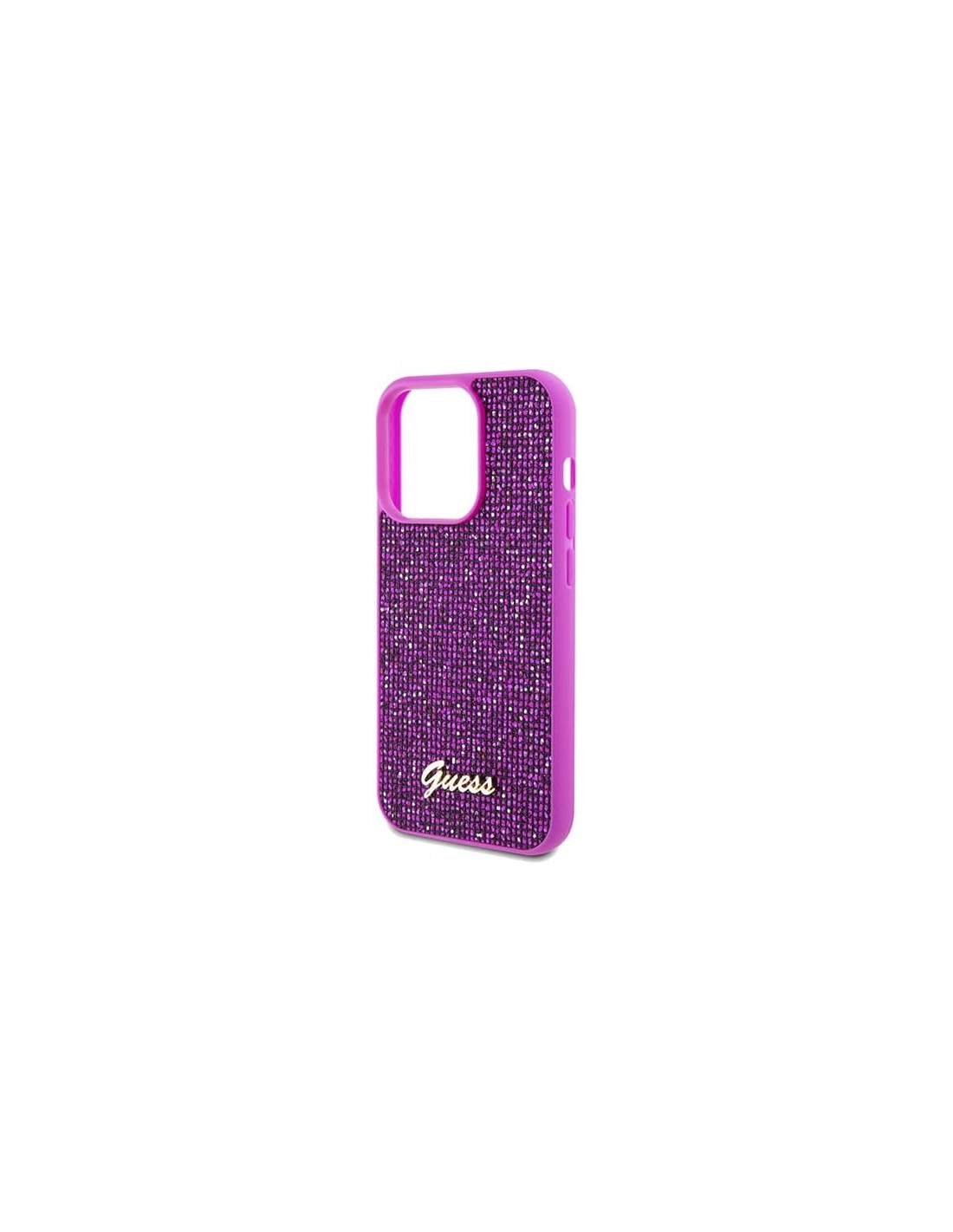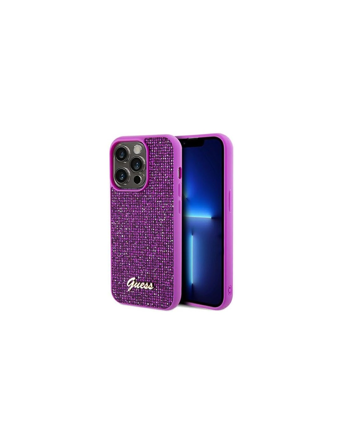 El vibrante color fucsia agrega un toque de sofisticación y estilo a tu dispositivo, mientras que los brillantes incrustados añaden un brillo sutil y elegante. Además, el logo dorado distintivo de Guess en la parte trasera de la funda agrega un toque de lujo y distinción.