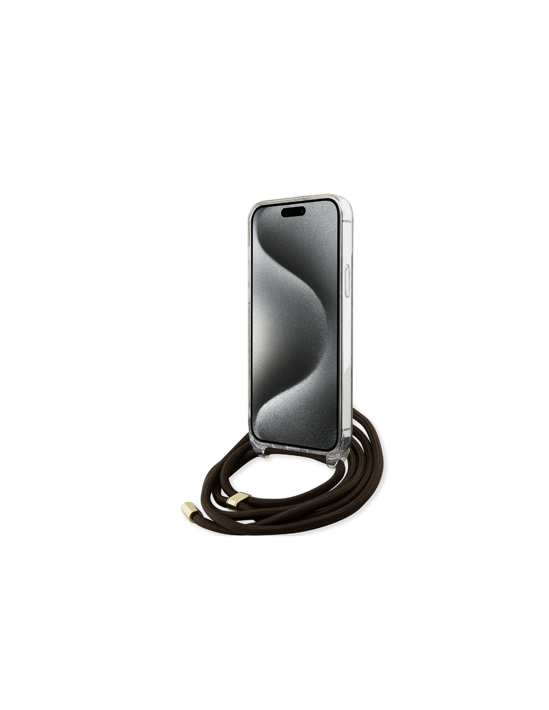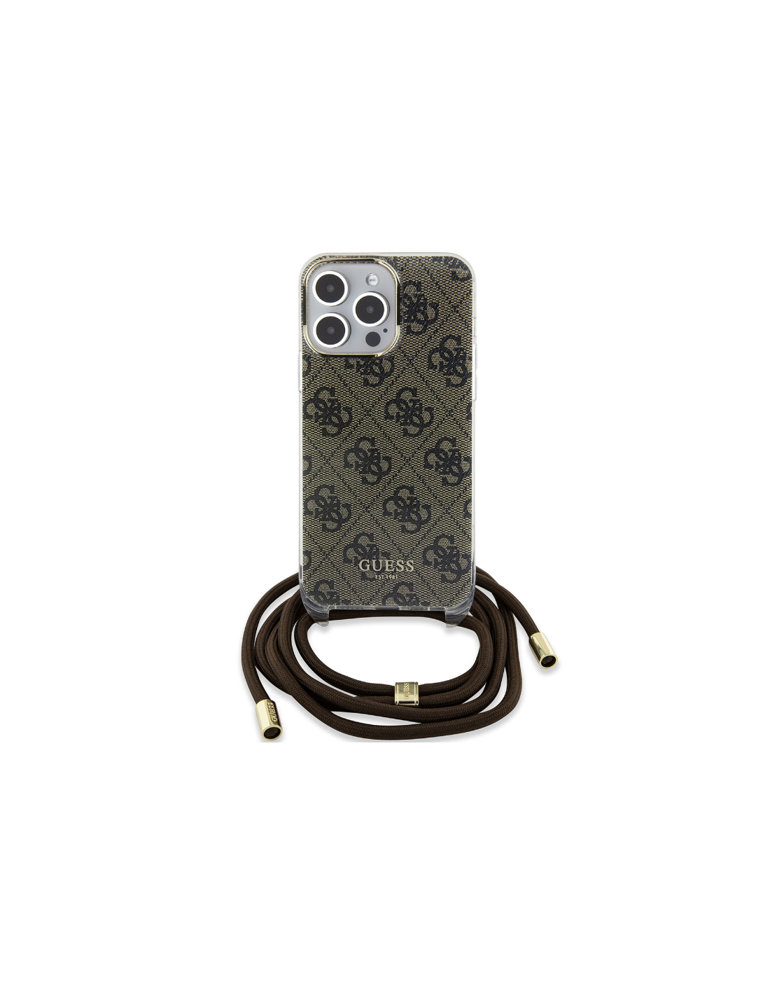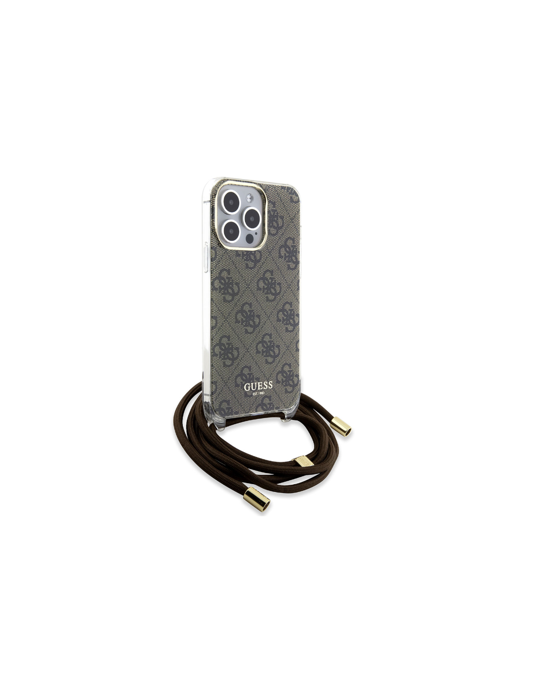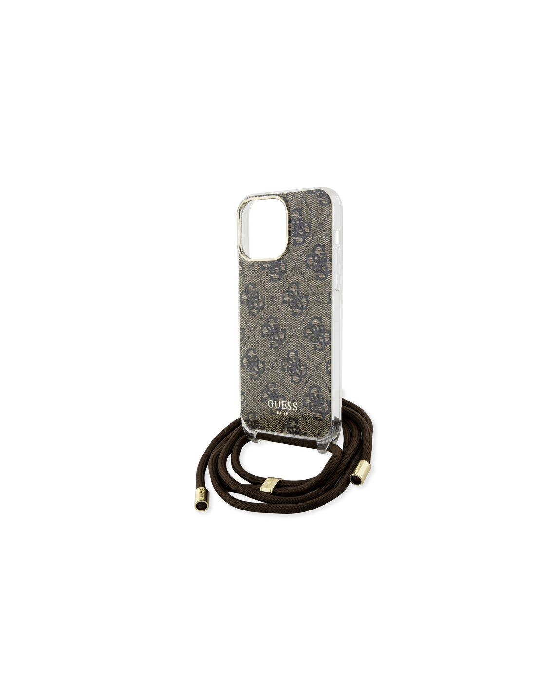 Funda Guess en Silicona diseño 4G con Cordón para iPhone 15 Pro Max color Marrón GUHCP15XHC4SEW