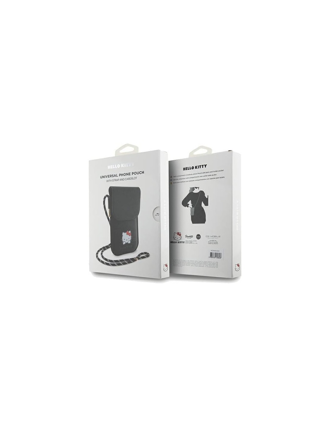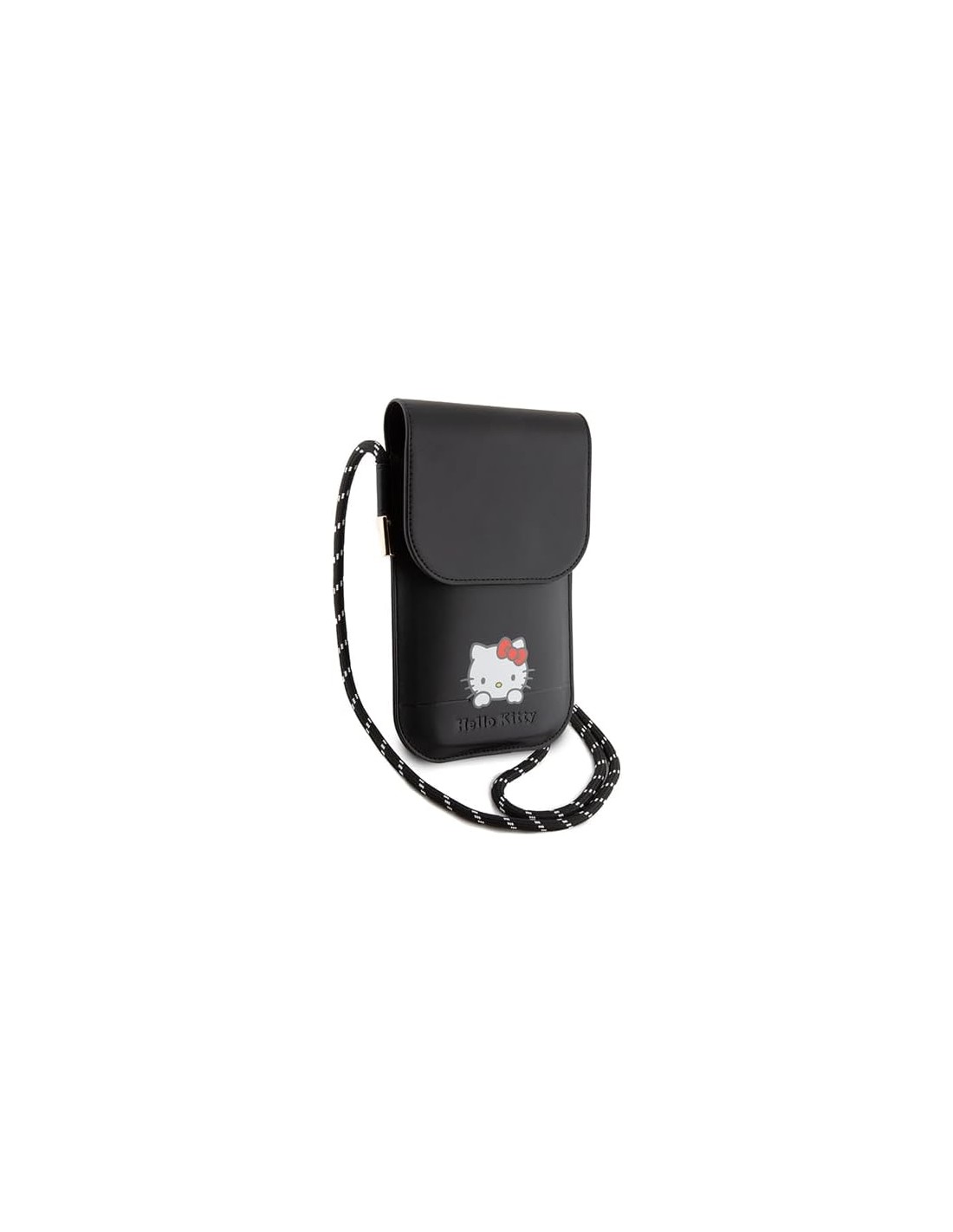 La funda bolso cartera Hello Kitty en color negro es el accesorio perfecto para cualquier amante de Hello Kitty que busque protección y estilo para su teléfono móvil.