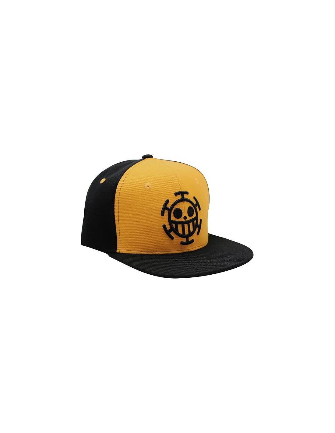 La Gorra Abystyle One Piece Modelo Trafalgar es el complemento perfecto para los fanáticos del universo creado por Eiichiro Oda. Con un diseño bicolor en amarillo y negro, esta gorra de visera plana rinde homenaje a Trafalgar Law y su tripulación, los Piratas Heart. El logo bordado en el frente representa su distintivo símbolo, resaltando sobre la tela de alta calidad.