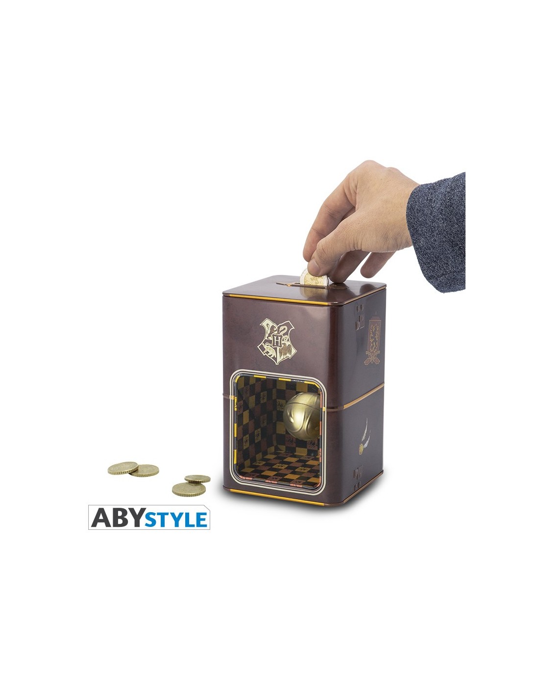 Esta hucha de Abystyle, inspirada en la mítica Snitch Dorada del universo de Harry Potter, es el accesorio perfecto para cualquier fan de la saga. Fabricada con PVC de alta calidad, reproduce fielmente el diseño esférico y alado de la Snitch, con su característico color dorado brillante.