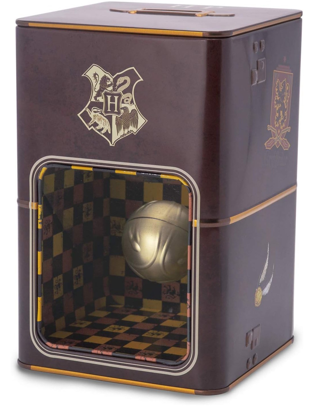 Con licencia oficial de Warner Bros., la Hucha Snitch Dorada es un objeto de coleccionista que añade un toque de encanto a cualquier habitación, estantería o escritorio. Es el regalo ideal para jóvenes magos y brujas, o para aquellos fans que quieran recordar la emoción de los partidos de Quidditch.