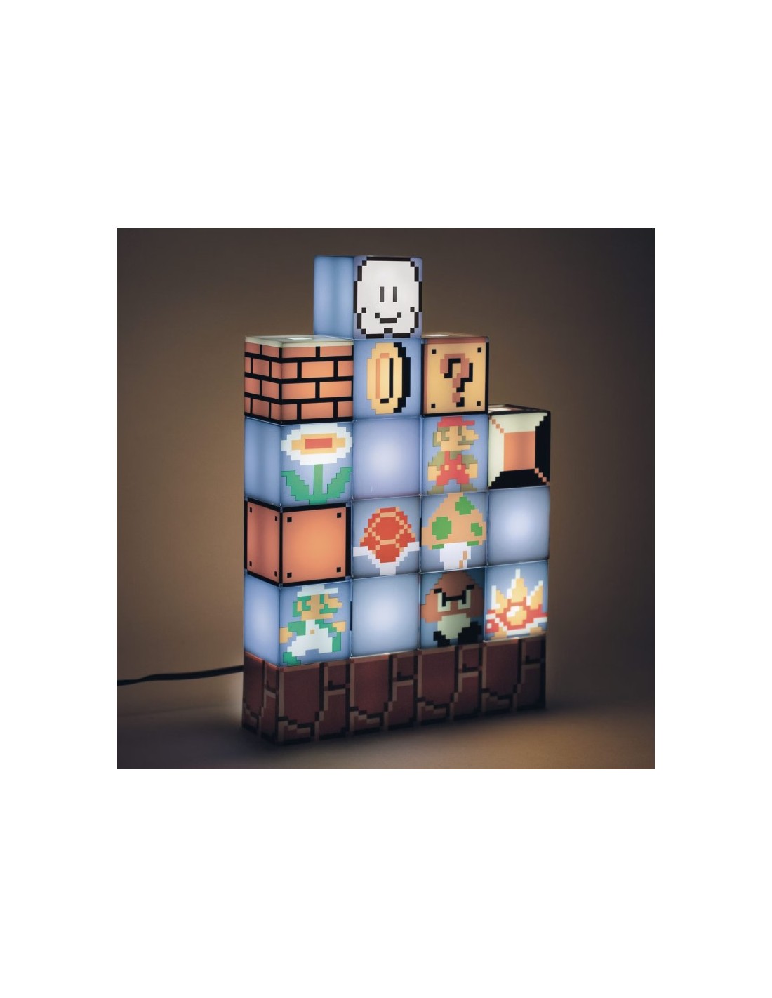 La Lámpara de LED Paladone Súper Mario Bros Modelo Bloques es el complemento perfecto para cualquier aficionado del icónico videojuego de Nintendo. Inspirada en los famosos bloques de interrogación que aparecen en los niveles de Súper Mario Bros, esta lámpara no solo ilumina tu espacio, sino que también aporta un toque de nostalgia y diversión a cualquier habitación.