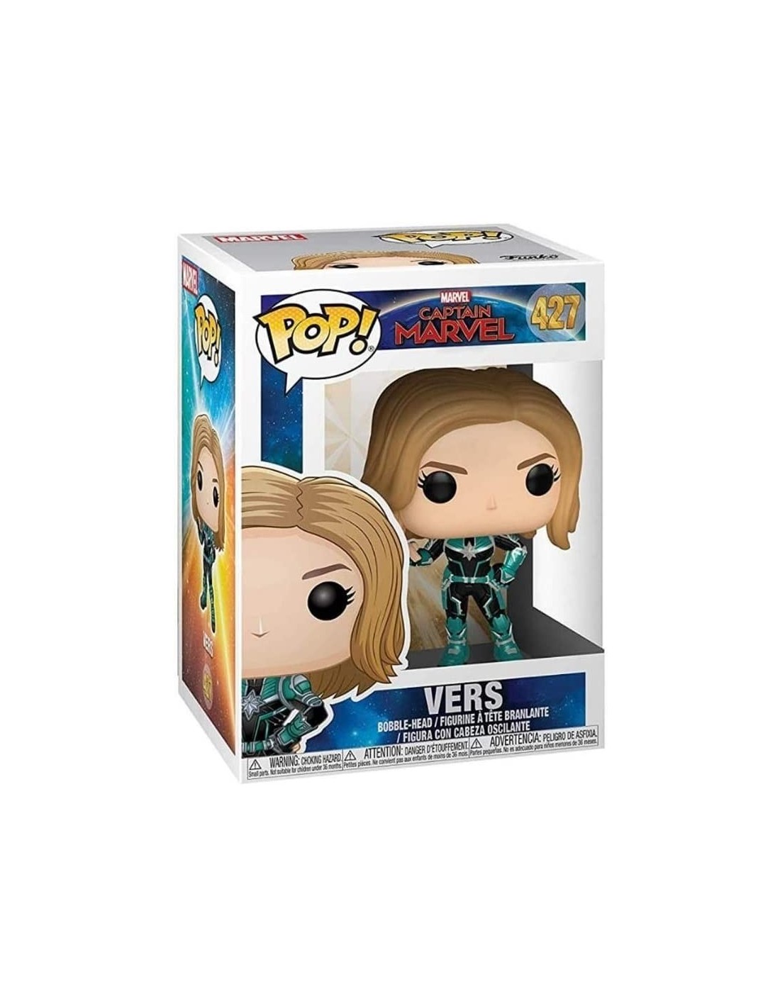 De endgame, capitán marvel, como un estilizado vinilo pop de funko