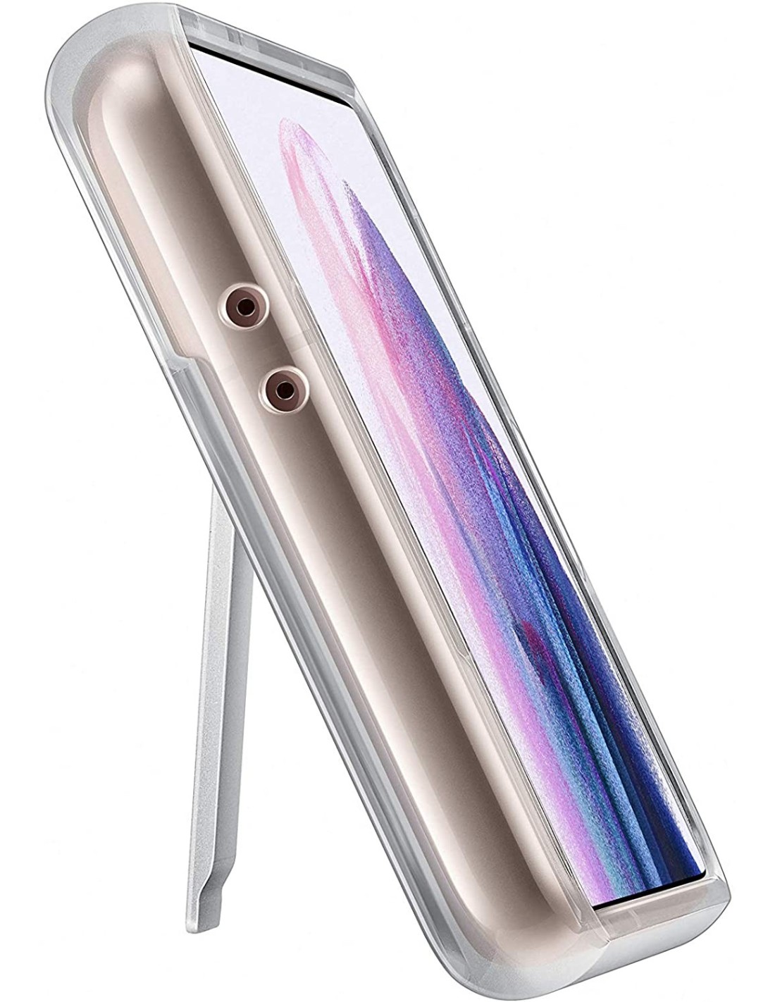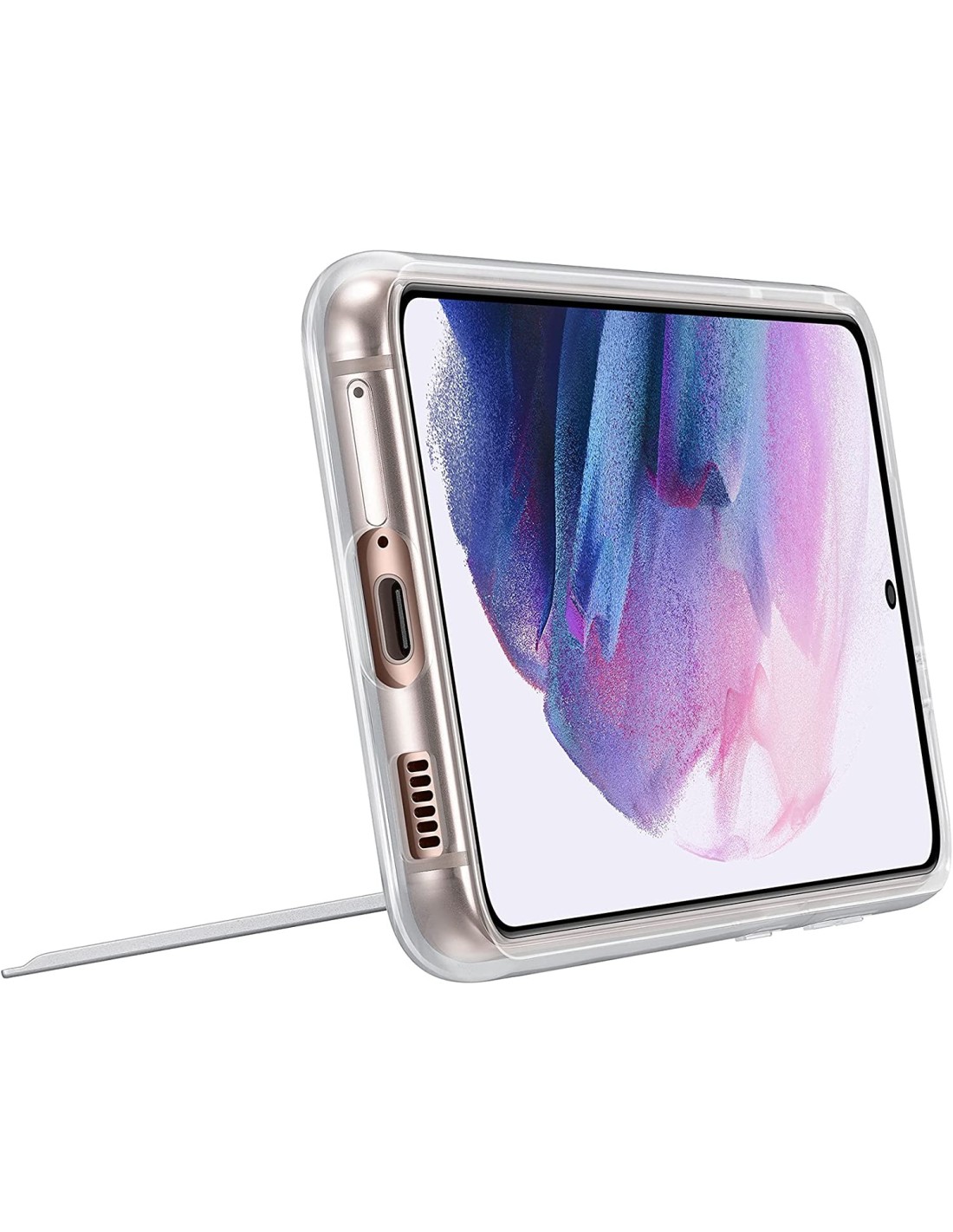 Protege tu Samsung Galaxy S21 de los arañazos del uso diario con esta funda de silicona y transparente que además tiene un pie que te permite apoyar tu teléfono.