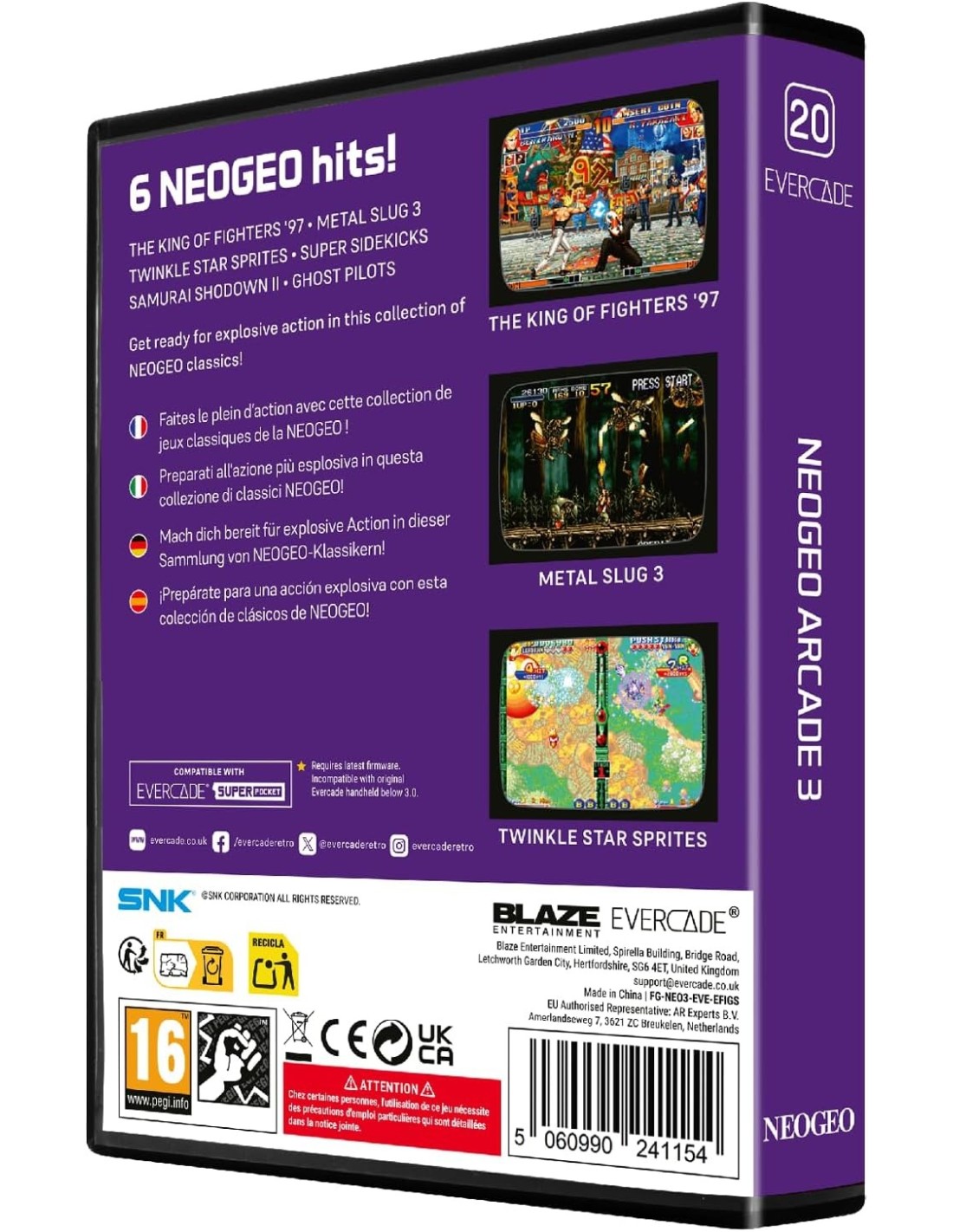 El Cartucho con Juegos NeoGeo Arcade 3 para Evercade reúne una potente selección de clásicos de la era dorada de NEOGEO, ofreciendo una experiencia retro auténtica con algunos de los juegos más emblemáticos de la historia arcade. Cada título está completamente adaptado a Evercade, permitiendo disfrutar de partidas rápidas, guardados instantáneos y un rendimiento fiel al original. Este cartucho es perfecto para coleccionistas, fans de SNK y jugadores que buscan revivir la experiencia de las recreativas con una presentación moderna pero respetuosa.
