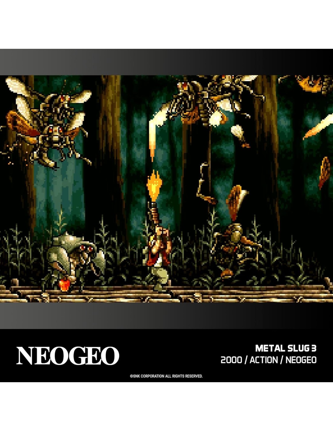 Incluye varios juegos destacados del catálogo NEOGEO (la lista concreta depende de la edición), abarcando géneros como lucha, acción y run & gun, manteniendo intacta la esencia que convirtió a NEOGEO en un icono de los salones recreativos.