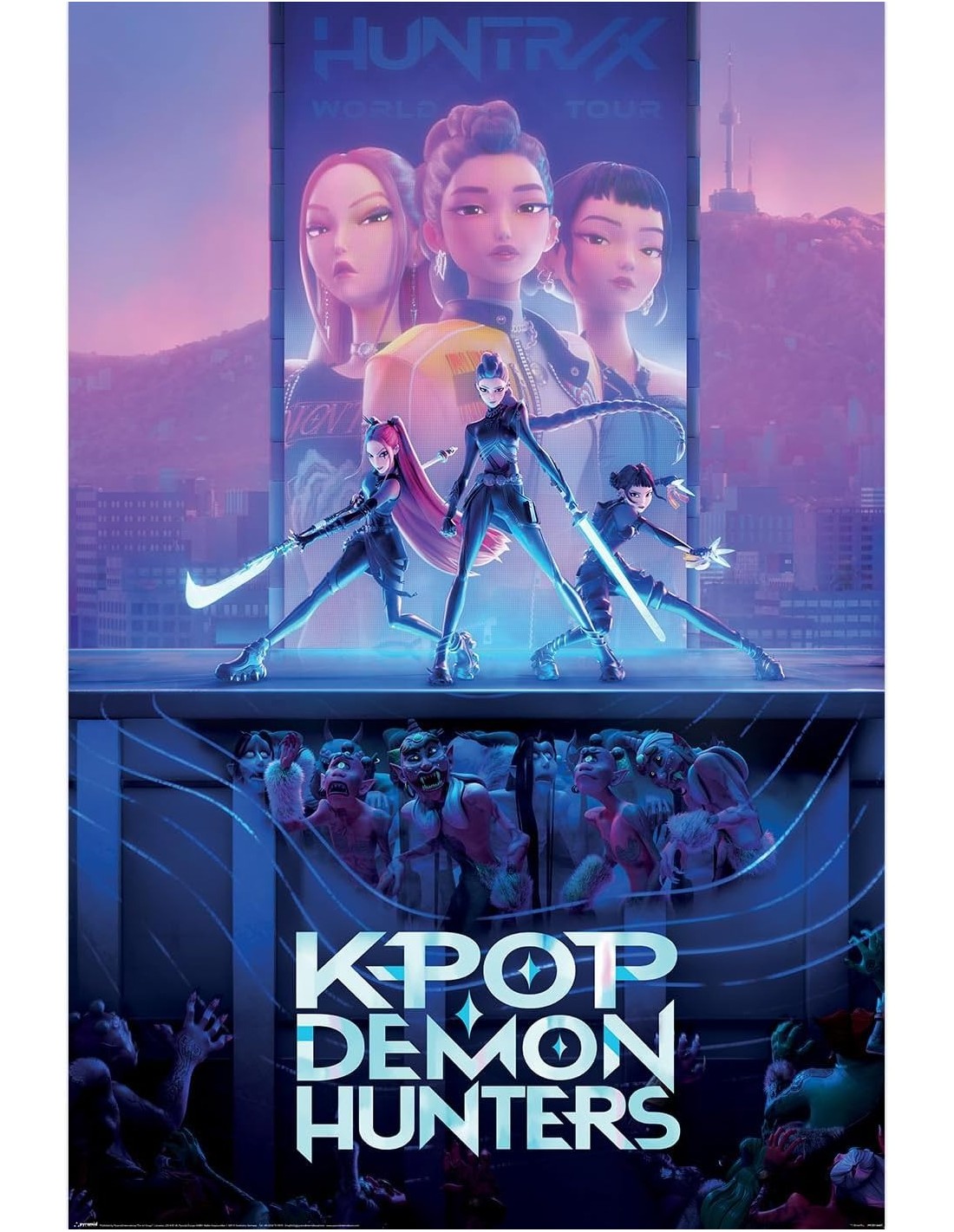 El Poster Pyramid Demon Hunters K-Pop es una fusión artística que destaca por su impresionante composición visual: personajes de estilo K-Pop reinterpretados como cazadores de demonios, con una mezcla de colores intensos, luces neón y una atmósfera mística. Impreso en papel de alta calidad con acabado satinado, ofrece un contraste perfecto que realza cada detalle de la ilustración, desde las expresiones de los protagonistas hasta el dinamismo de las sombras y efectos mágicos.
