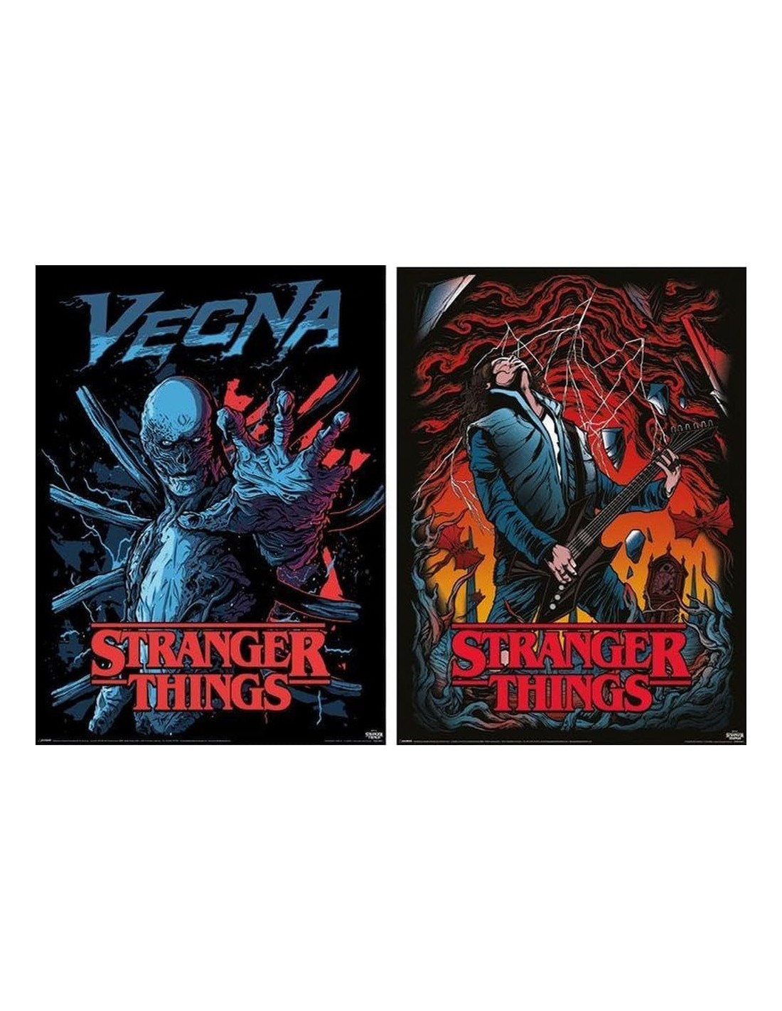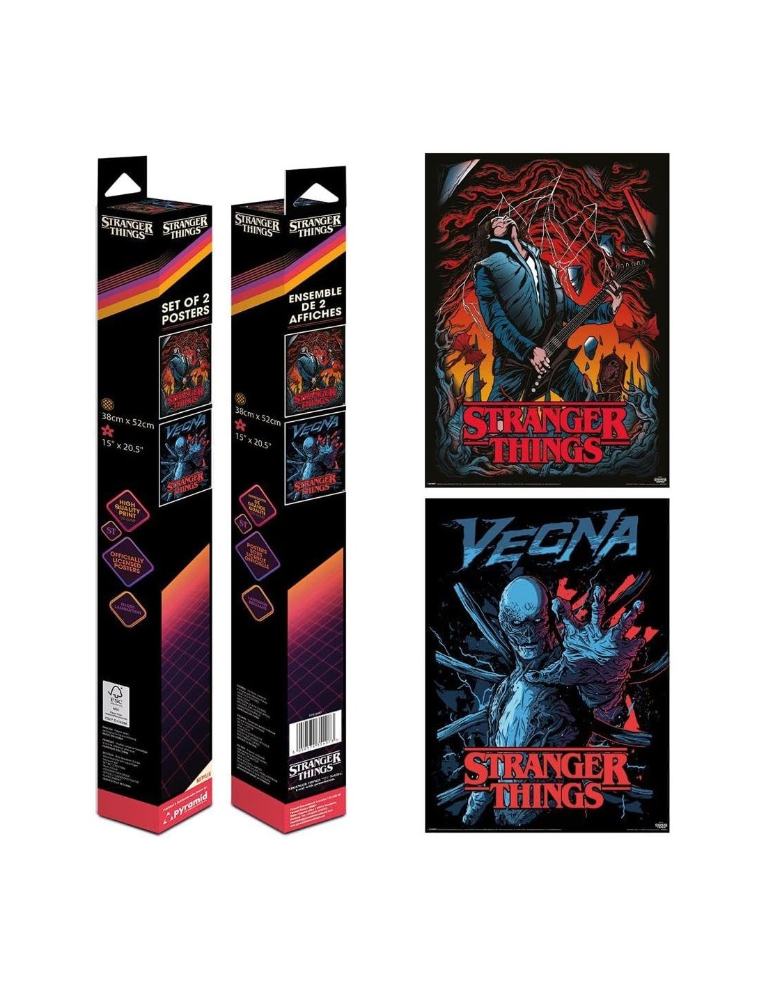 Fabricados por Pyramid, reconocida marca de merchandising, estos pósters ofrecen una impresión nítida y colores intensos que resaltan tanto la estética oscura de Vecna como la actitud rebelde y rockera de Eddie. Son perfectos para decorar dormitorios, salas de juego, zonas gaming o colecciones temáticas de Stranger Things, aportando personalidad y un toque distintivo al espacio.