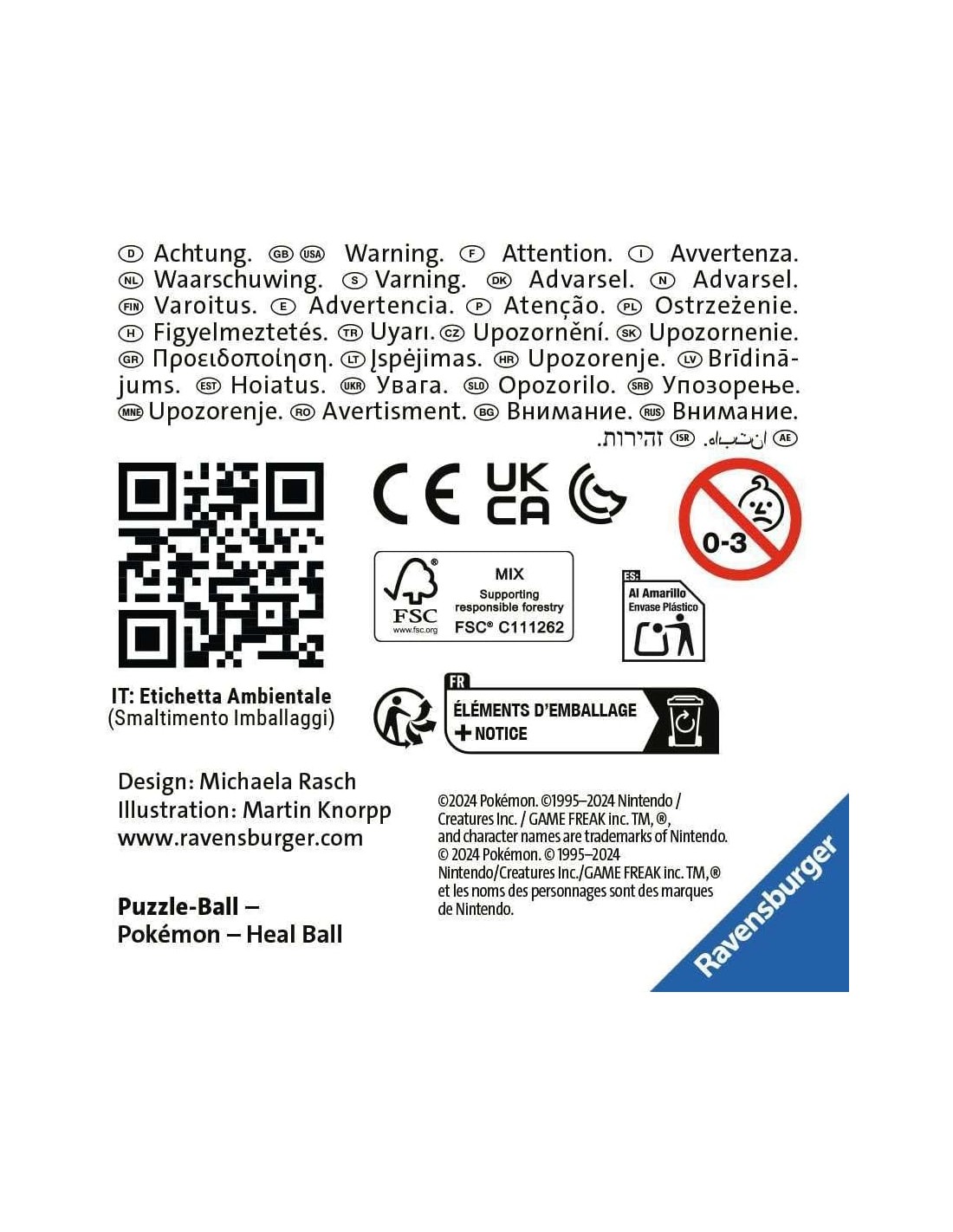 El montaje del puzzle promueve habilidades de pensamiento crítico y destreza manual, además de fomentar la creatividad y la imaginación mientras los niños crean su propia Pokeball. Una vez completado, el modelo en 3D se convierte en una pieza de exhibición encantadora para decorar la habitación de cualquier fanático de Pokémon.