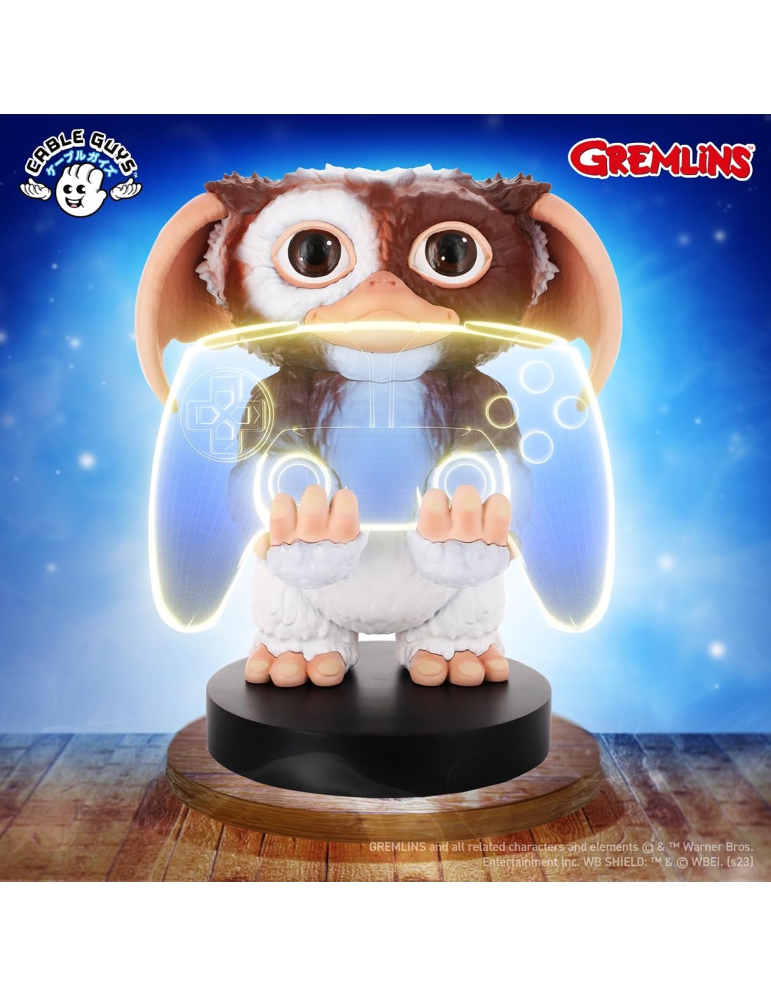 El Cable Guys Modelo Gizmo es un soporte decorativo y funcional diseñado para sostener mandos de videojuegos (como los de PlayStation o Xbox) o teléfonos móviles. Con una figura detallada de Gizmo, el encantador mogwai de la película Gremlins, este accesorio no solo es útil, sino también una pieza de colección ideal para fans del cine retro y la cultura pop.