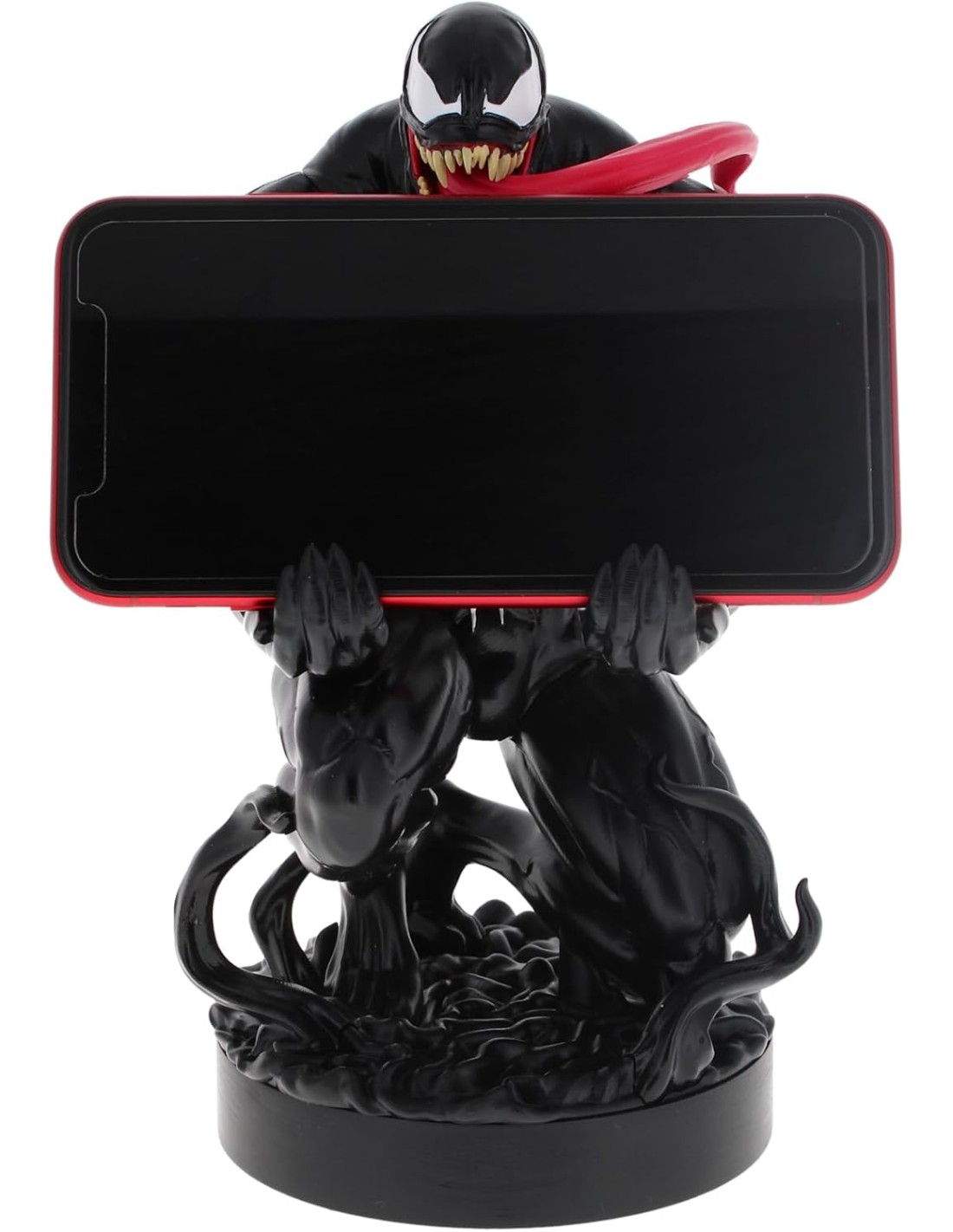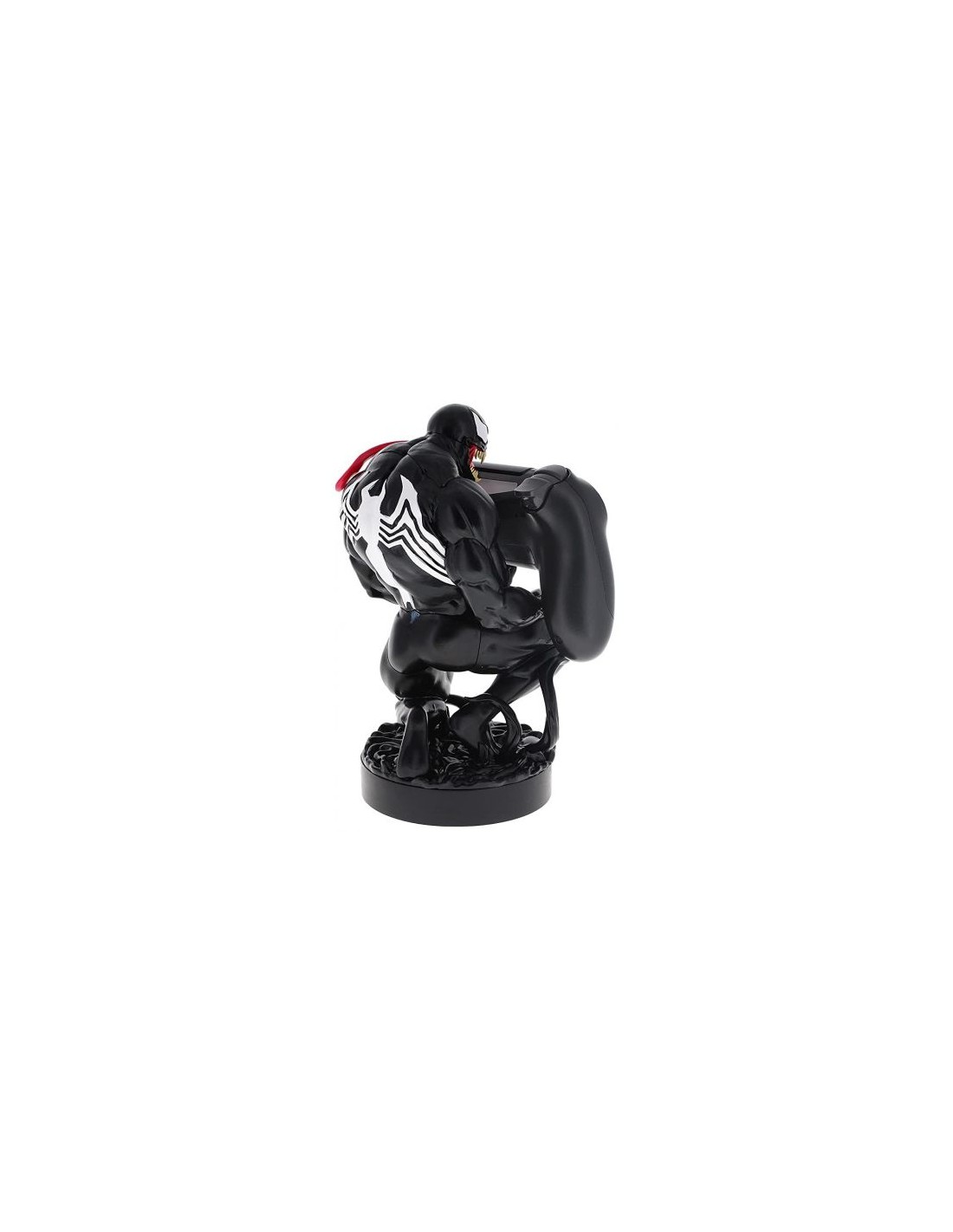 El Cable Guys Modelo Venom es un soporte oficial diseñado para sostener mandos de consola (PlayStation, Xbox) o teléfonos móviles con firmeza y estilo. Inspirado en uno de los personajes más imponentes y populares de Marvel, Venom aparece con su musculosa figura, ojos blancos, lengua fuera y su característica sonrisa siniestra.