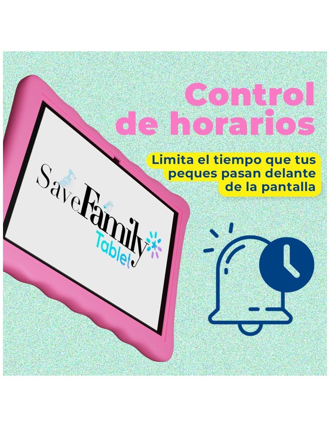 - Horario de uso: Apostamos por un uso moderado y medido de las nuevas tecnologías. Con esta función podrás elegir horarios de uso tanto en la tablet en general como en APPs concretas. Te asegurarás un uso limitado del dispositivo.