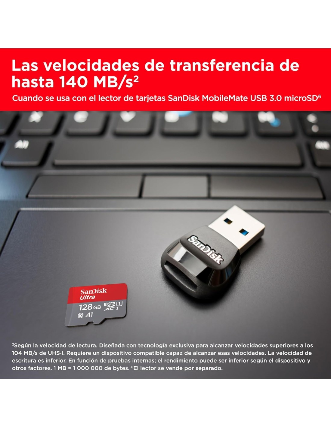 La Tarjeta de Memoria SanDisk Ultra MicroSD de 128GB es la solución perfecta para expandir el almacenamiento de dispositivos como smartphones, tablets, cámaras y consolas de videojuegos. Con tecnología UHS-I y clasificación C10, ofrece velocidades de transferencia de hasta 140MB/s, lo que permite capturar y mover contenido de alta calidad con rapidez y fiabilidad.