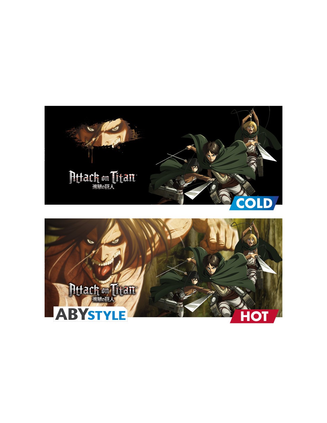 La tecnología de la taza térmica simula perfectamente el gran plot twist de la serie, donde la verdadera amenaza y la fuerza de Eren Yeager como el Titán de Ataque se revelan gradualmente. El hecho de que la taza "cambie" al ser calentada refleja la transformación del personaje y el descubrimiento de los secretos que acechan detrás de la humanidad.